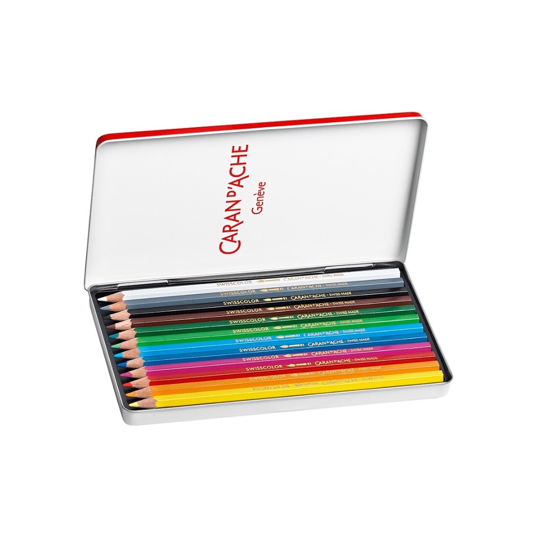 El lápiz soluble en agua con los colores suizos, un recuerdo típico, atemporal y colorido de Suiza. Diseñado para los amantes de los recuerdos vacacionales, tanto jóvenes como mayores, e ideal tanto para dibujar como para colorear, los productos de la gama Swisscolor se elaboran en nuestros talleres de Ginebra. Su producción se basa en los mismos procesos de calidad y la misma experiencia que todos los productos de bellas artes de Caran d'Ache.