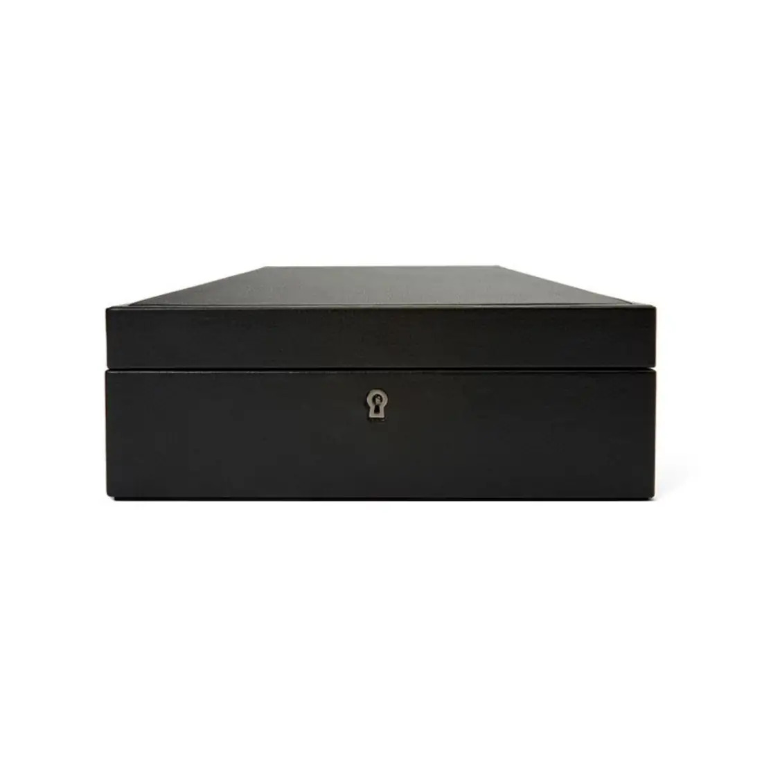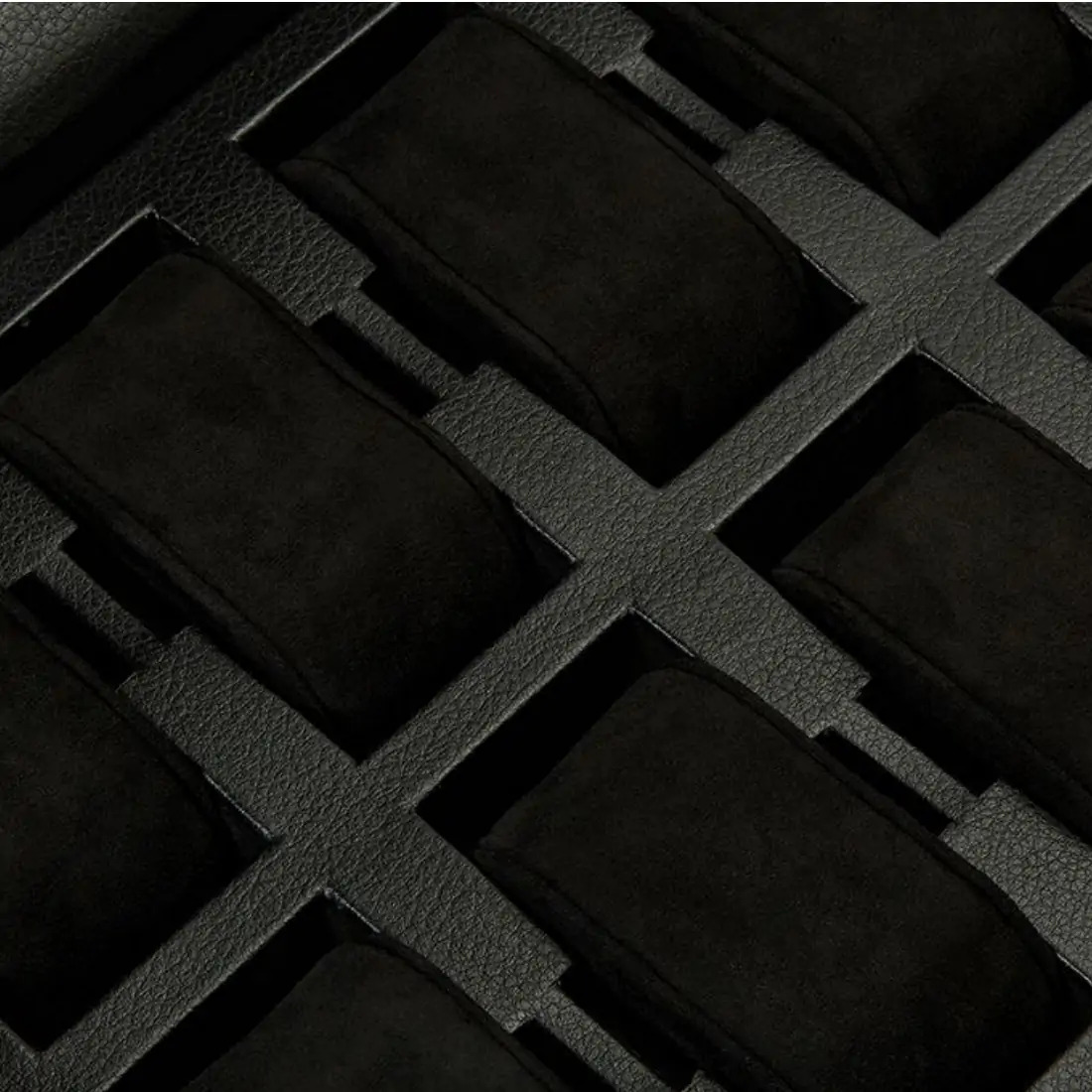 Tapa con paneles en ángulo cuádruple Herrajes dorados Seguridad de cerraduras y llaves Cojines de reloj suspendidos Puerto USB para reloj inteligente Almacenamiento para 8 piezas de reloj Cuero vegano