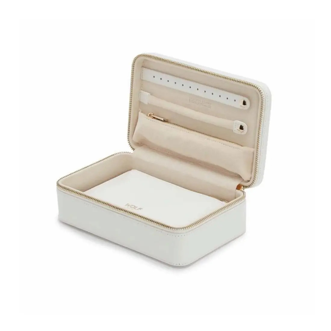 Material: Cuero Almacenamiento: 1 lengüeta para arete, 1 lengüeta para anillo, 1 bolsillo con cremallera, bolsa doble multiusos con cremallera con 4 compartimentos de almacenamiento, 3 ganchos para collar a presión con bolsillo. LusterLoc™: permite que la tela que recubre el interior de sus estuches de joyería absorba los gases hostiles que causan el deslustre. En condiciones de almacenamiento típicas, puede evitar el deslustre.