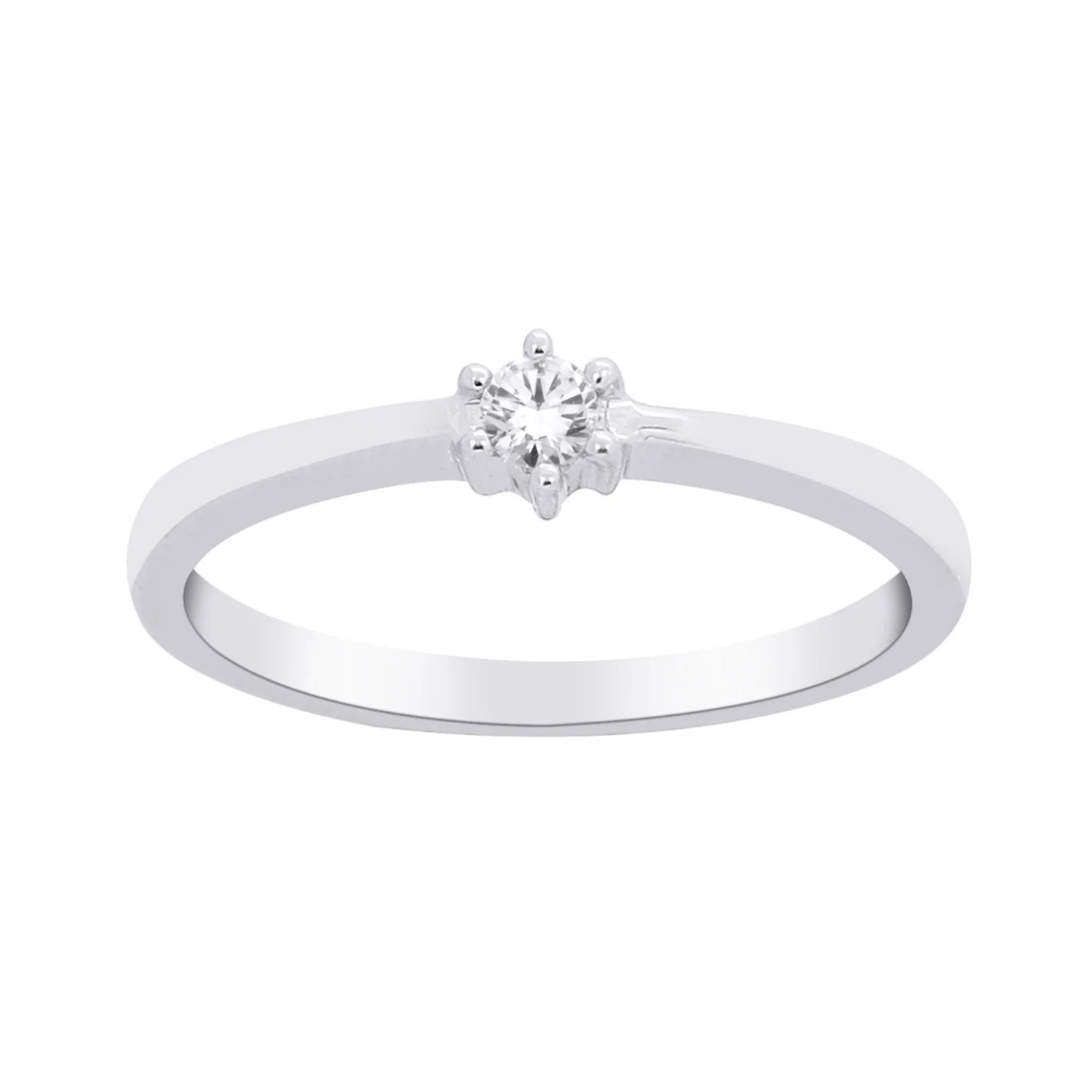 Anillo De Promesa Solitario De Oro Blanco 14k Diamante .07Q