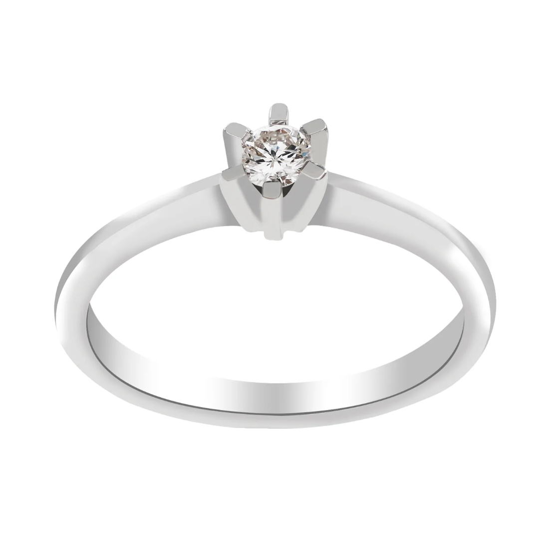 Anillo Estilo Solitario Clásico Oro Blanco 14k Diamante Cort