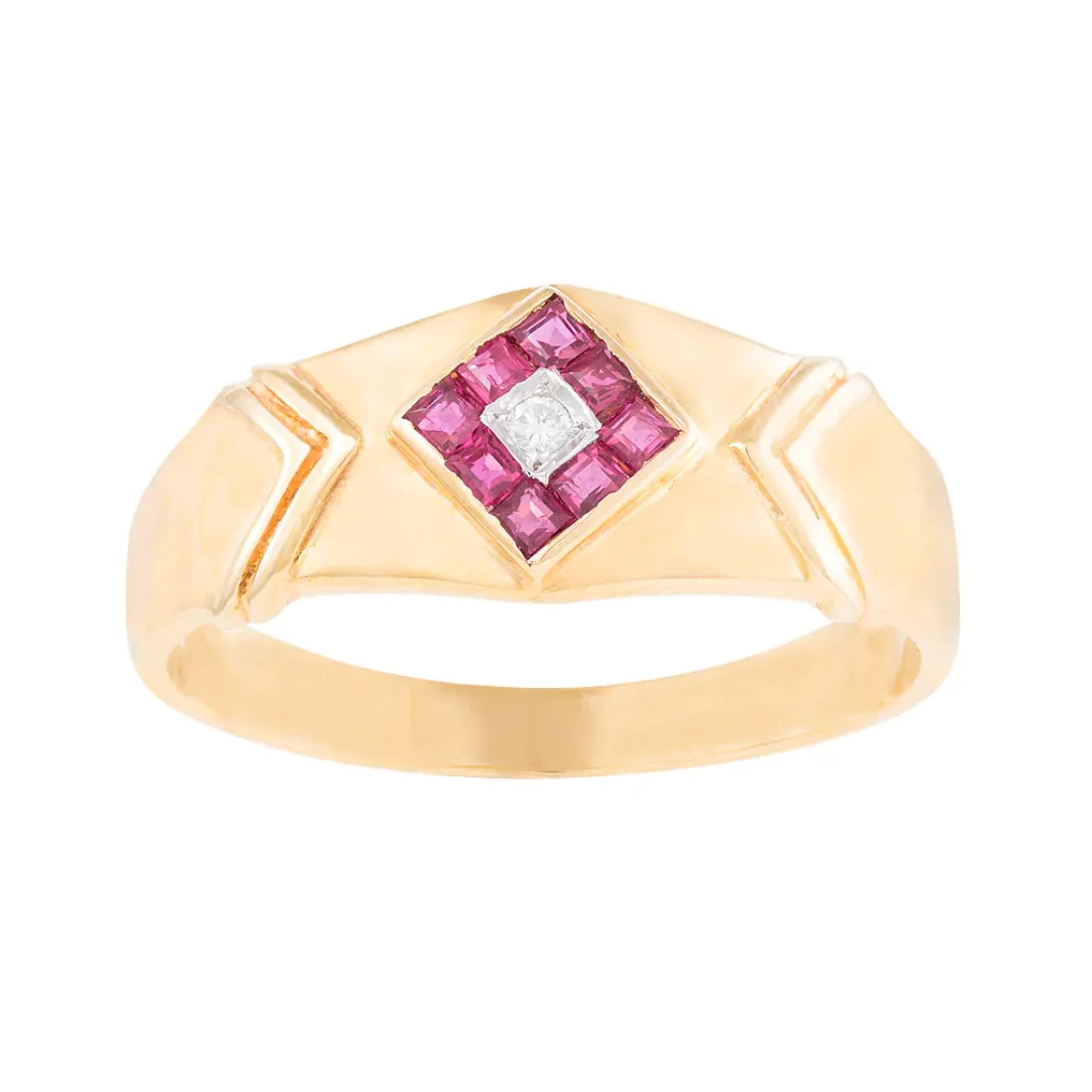 Anillo Geometry En Oro 14k Con Diamante Y Rubíes