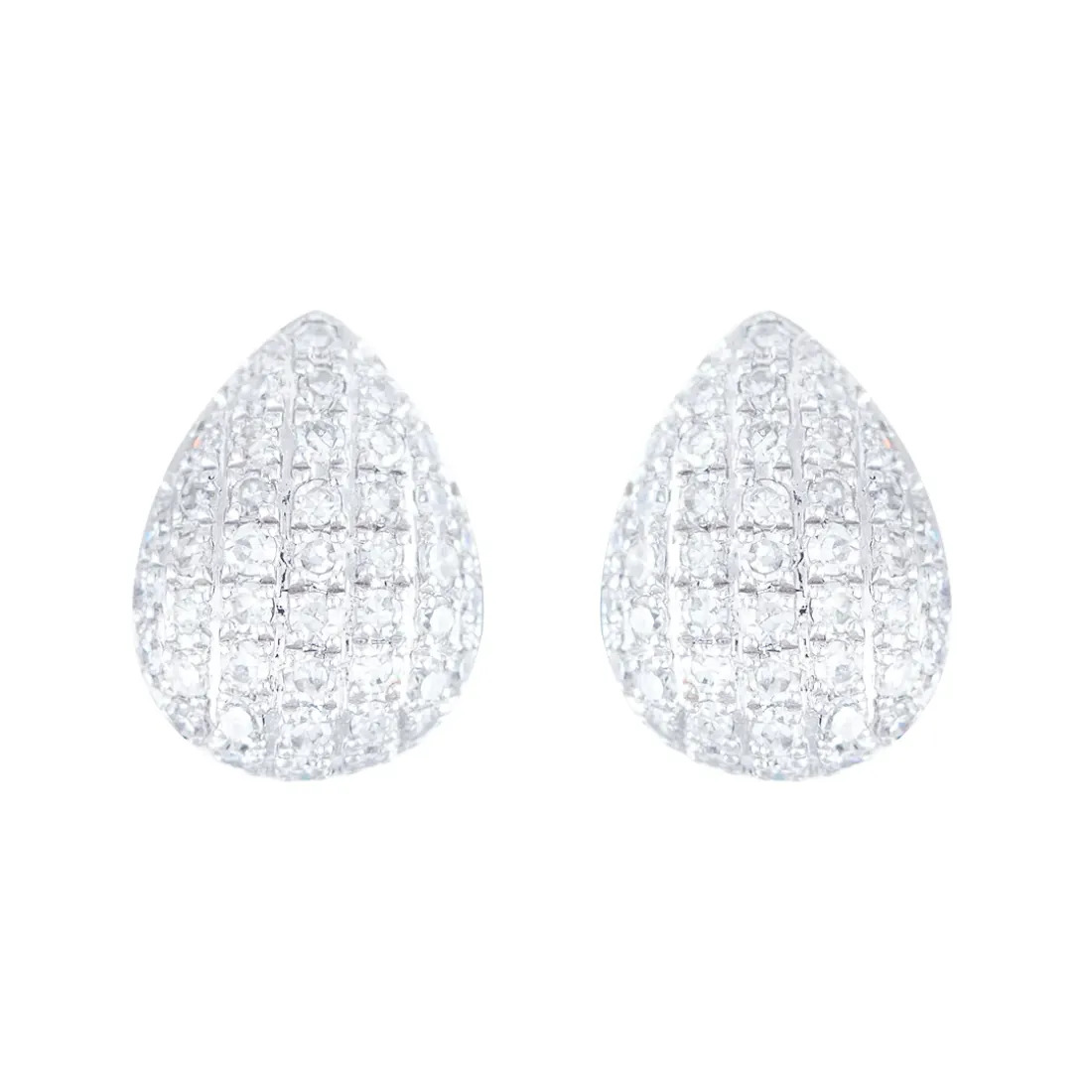 Aretes Drop En Oro Blanco 14k Con Diamantes