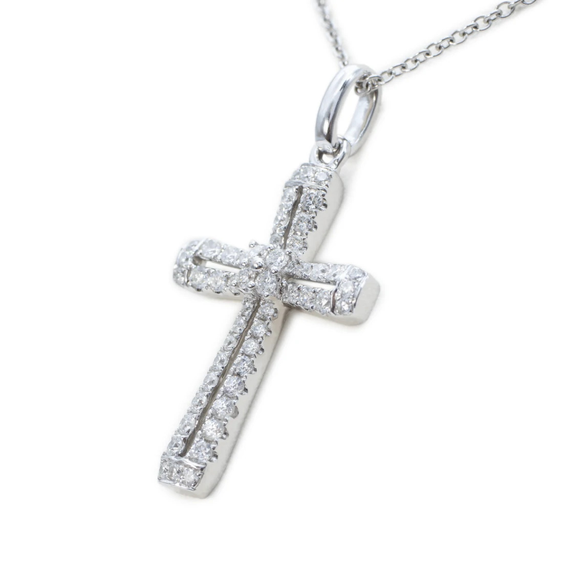 Gargantilla Oro Blanco 14K Cruz con Diamantes