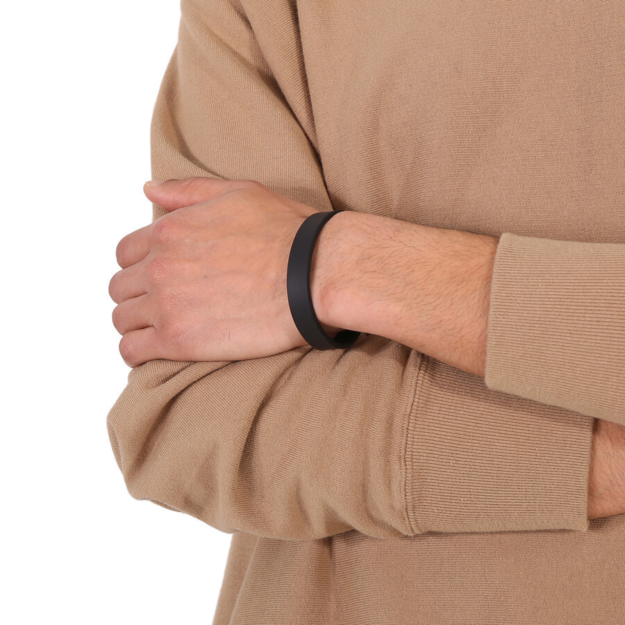 Pulseras de cuero de acero inoxidable Montblanc. Confeccionado en piel negra con cierre de acero inoxidable cepillado mate.