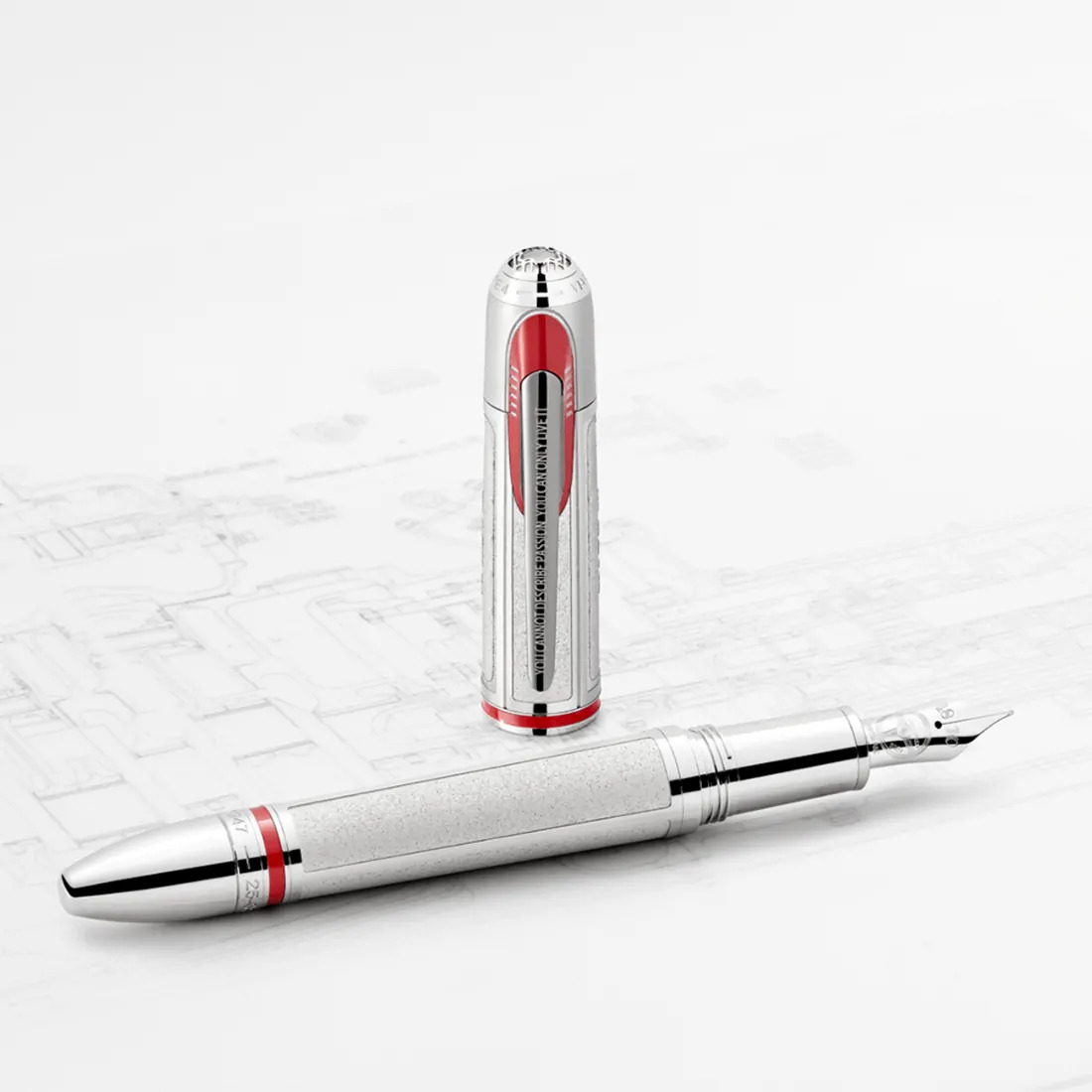 Montblanc rinde homenaje al espíritu visionario de Enzo Ferrari: el piloto de carreras, además de empresario, que fundó la legendaria Scuderia Ferrari y estableció un imperio automovilístico mundial cuyo nombre se ha convertido en sinónimo de excelente calidad y pasión por la velocidad. Este artículo de escritura, elaborado en metal y tratado para evocar la estructura del motor del Ferrari 125 S, rinde homenaje a las precisas habilidades de construcción de los talleres de Ferrari.