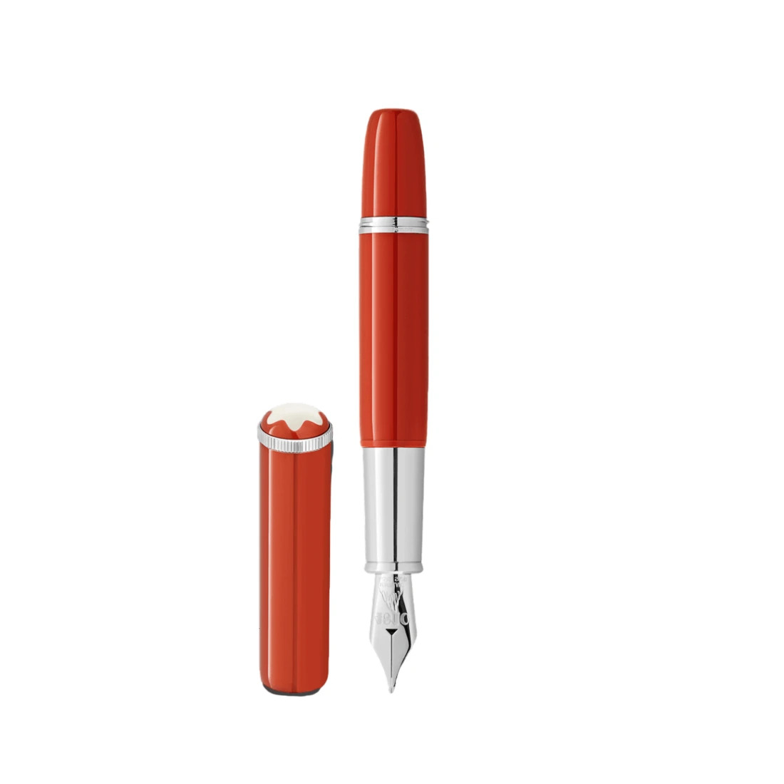 Laca preciosa color coral con detalles con revestimiento en platino Emblema Montblanc en resina preciosa rodeado por el icónico color coral de la colección Montblanc Rouge et Noir