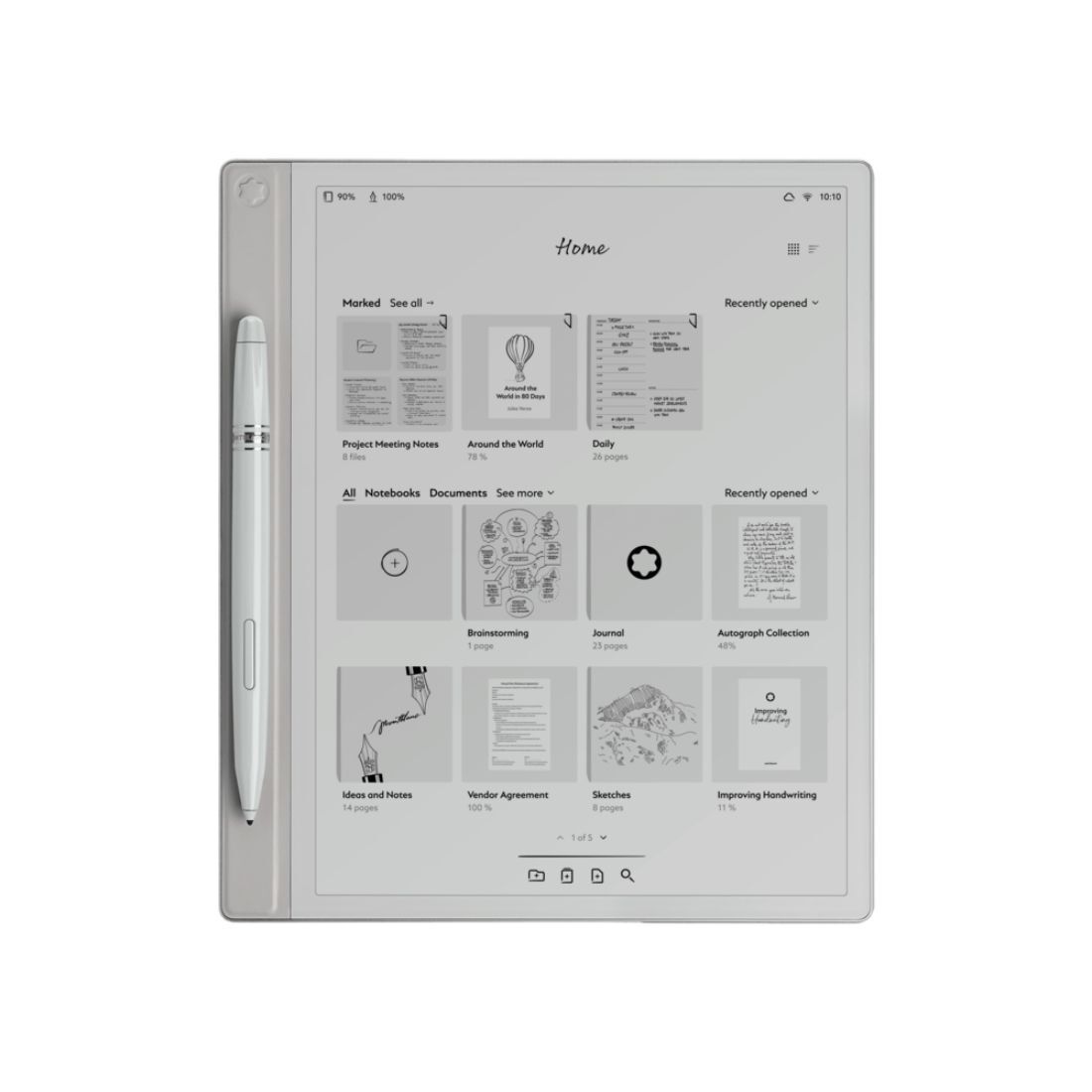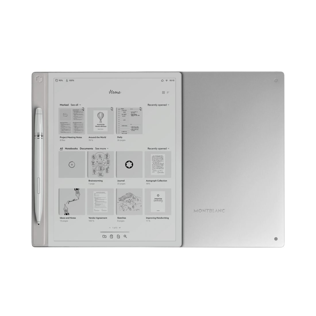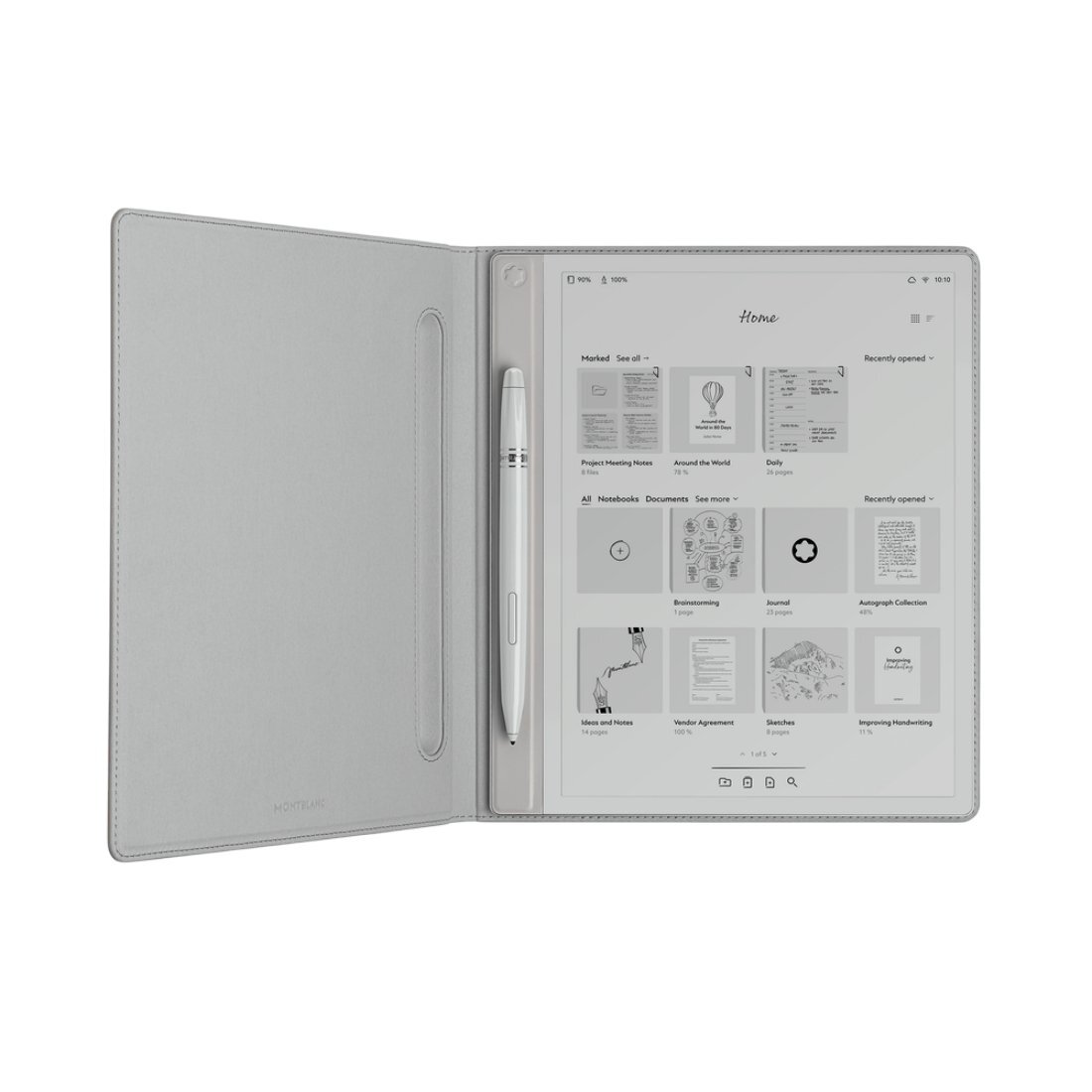 Conjunto compuesto por tableta Montblanc Digital Paper, Montblanc Digital Pen equipado con una punta (tipo Linen), 2 puntas adicionales (Suave y Mate), cable USB-C, manual de seguridad incl. tarjeta de garantía.