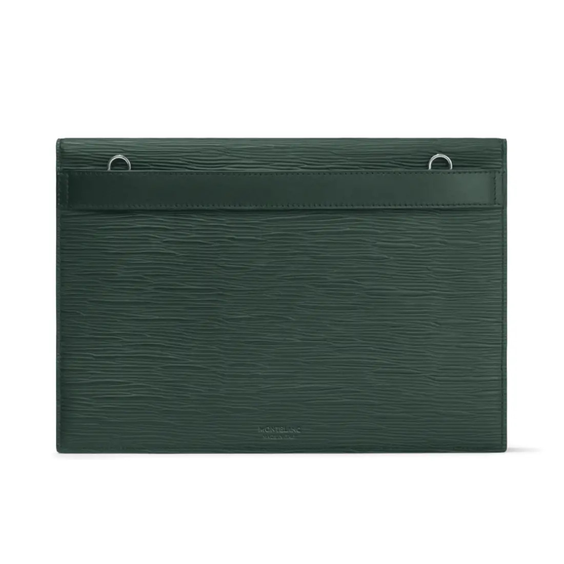 Este bolso de mano con forma de sobre, inspirado en el mundo de la escritura, es un aliado versátil que le acompañará allá donde vaya. Su diseño modular, confeccionado en piel de alta calidad, cuenta con una correa lateral en la parte trasera que permite enganchar el bolso a accesorios de mayor tamaño, como portadocumentos y bolsos tote. El emblema Montblanc destaca en la solapa delantera en un novedoso formato más grande.