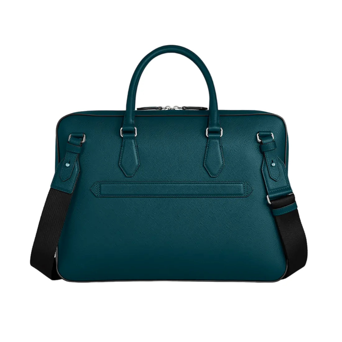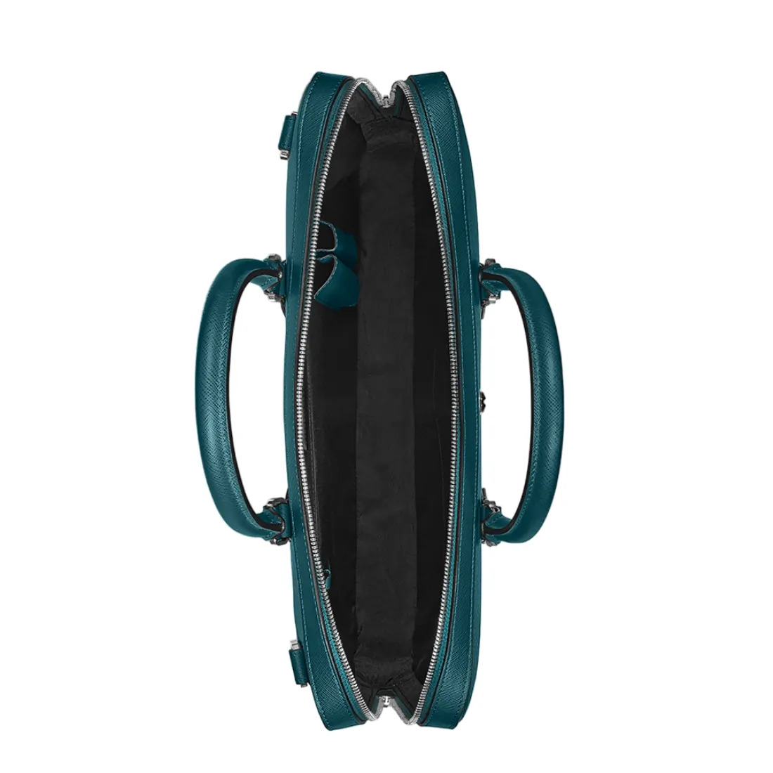 Este portafolio elegante añade un toque refinado a su atuendo de negocios. Elaborado en lujosa piel con estampado Saffiano color azul Chipre, ofrece una funcionalidad modular que le permite personalizar su estuche fijándole pequeños objetos. Las asas, inspiradas en el arte de la escritura manuscrita, junto con un emblema Montblanc ampliado, son sus características de diseño destacables.