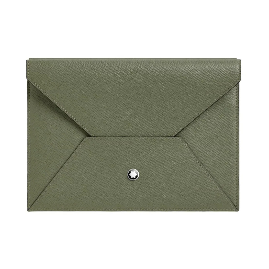 Estuche de piel, que presenta un diseño que evoca la forma de un sobre, todo un homenaje al mundo de la escritura, cuenta con dos bolsillos para guardar objetos más pequeños