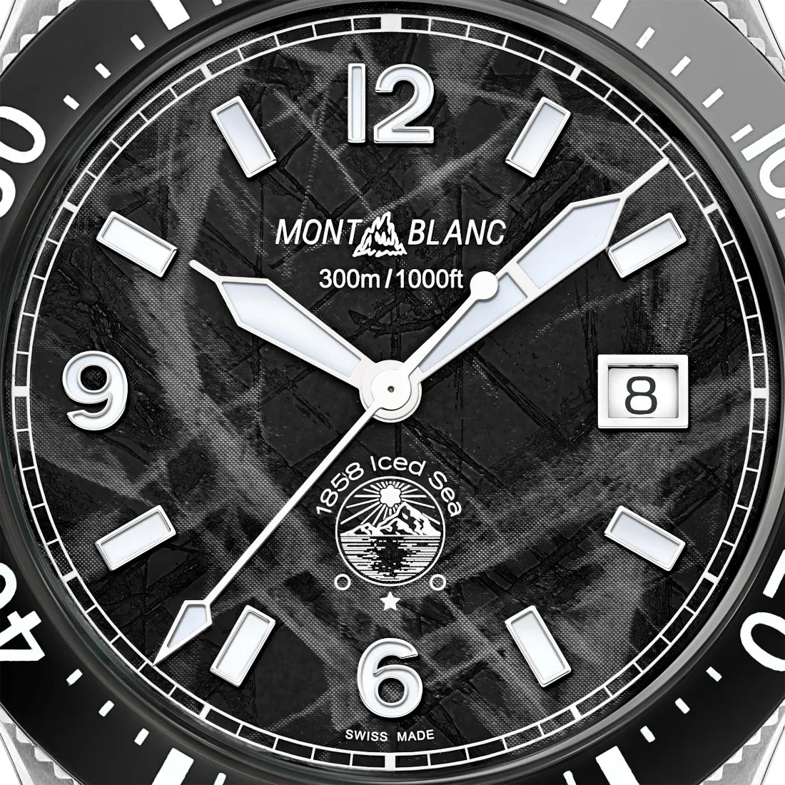 MATERIAL DE LA CAJA: Acero ESFERA: Esfera negra con motivo de glaciar y números árabes rodiados luminiscentes BISEL: Bisel giratorio en una dirección FORMA DEL CRISTAL: Abombado DESCRIPCIÓN DEL CRISTAL: Cristal abombado con revestimiento antirreflejante TIPO DE CRISTAL: Zafiro CORONA: Atornillada y acanalada de acero con emblema Montblanc en relieve COLOR DE LA LUNETA: Negro RESISTENTE AL AGUA: 30 bar (300 m) bar MATERIAL DE LA PARTE TRASERA DE LA CAJA: Caja de acero con bisel unidireccional de cerámica bicolor COLOR DE LA PULSERA: Acero DIÁMETRO DE LA CAJA: 41 mm MATERIAL DE LA LUNETA: Acero - Cerámica