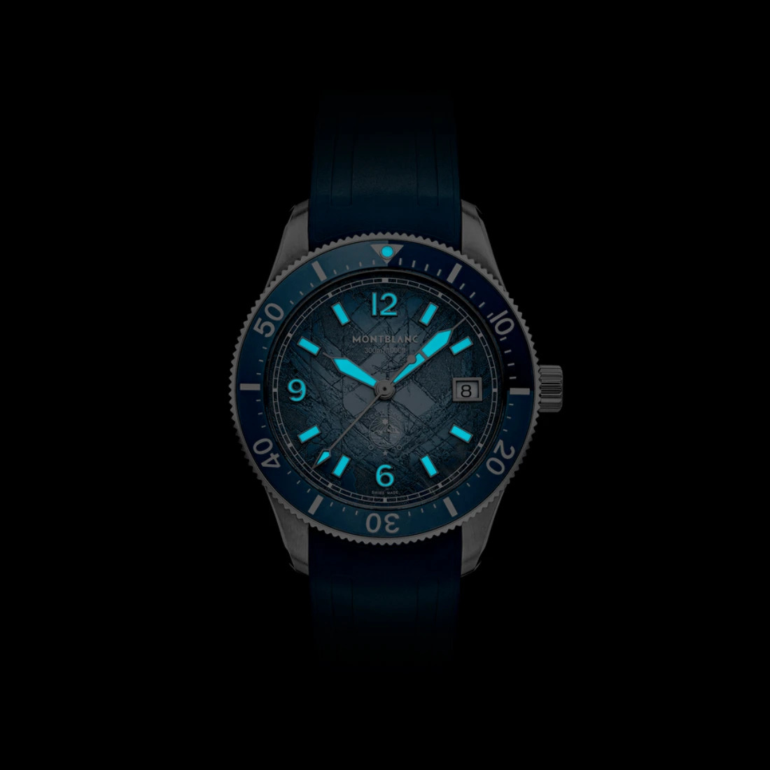 Bisel giratorio unidireccional con inserción de aluminio anodizado bicolor azul