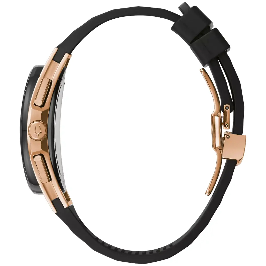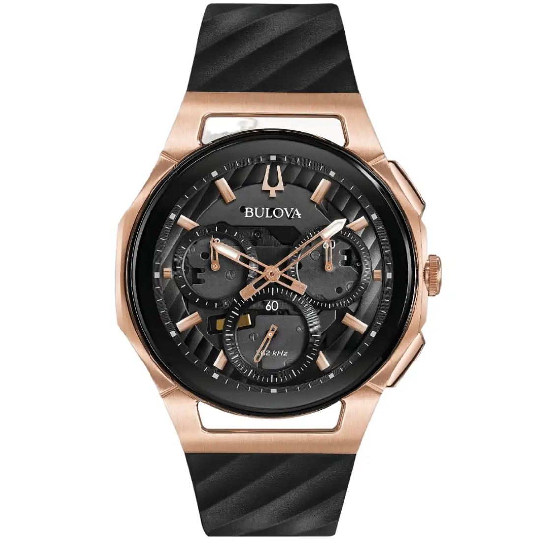 HPQ CURV Un movimiento que presenta un cristal de cuarzo de 3 puntas con una frecuencia de 262 kHz que es 8 veces mayor que el cuarzo estándar, lo que lleva a una precisión de segundos al año.