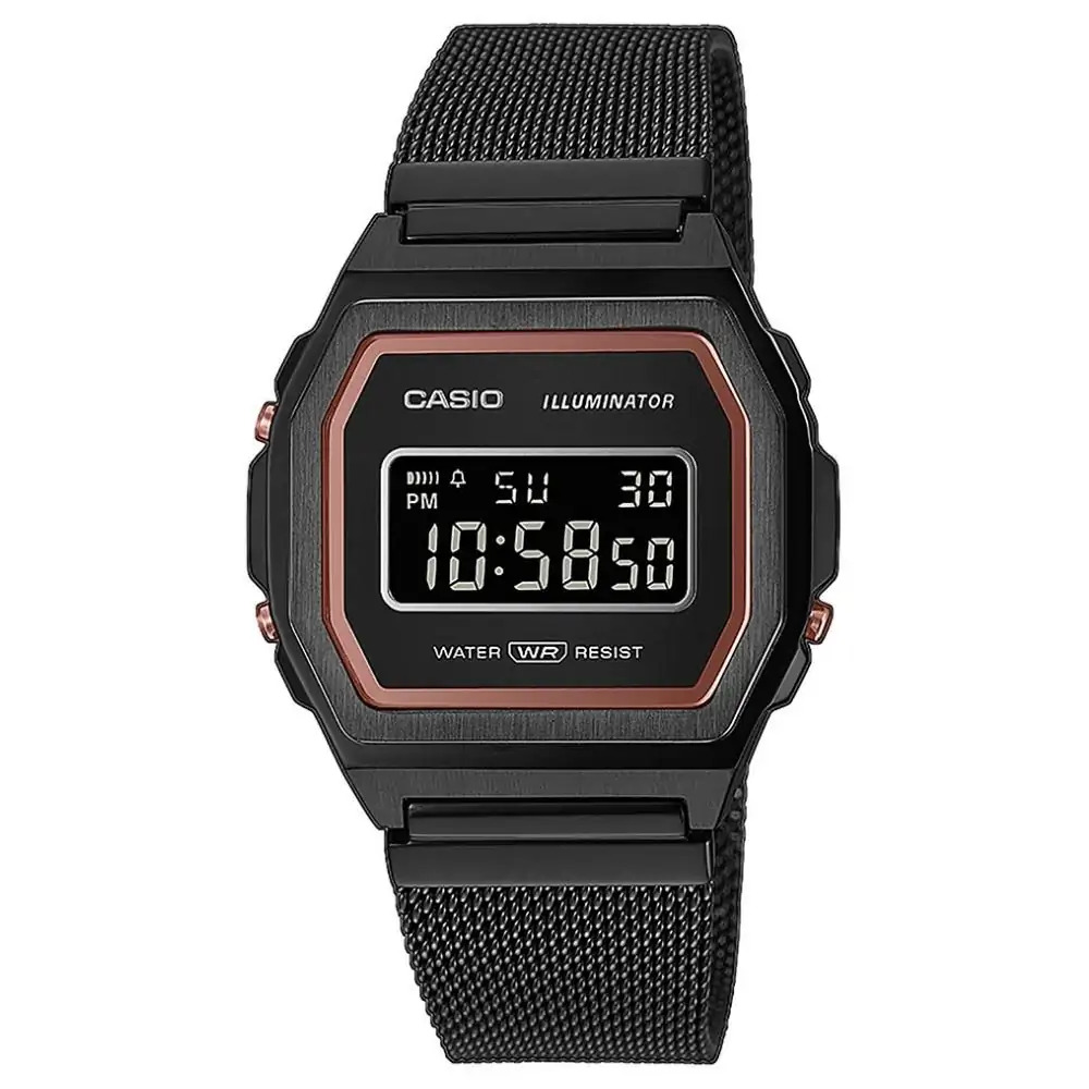 Cronómetro Alarma diaria Señal horaria Luz de fondo LED (Super Illuminator) Calendario automático (28 días para febrero) Formato de 12 y 24 horas Funciones clásicas de reloj: Hora, minuto, segundo, p. m., fecha, día Precisión: ±30 segundos por mes