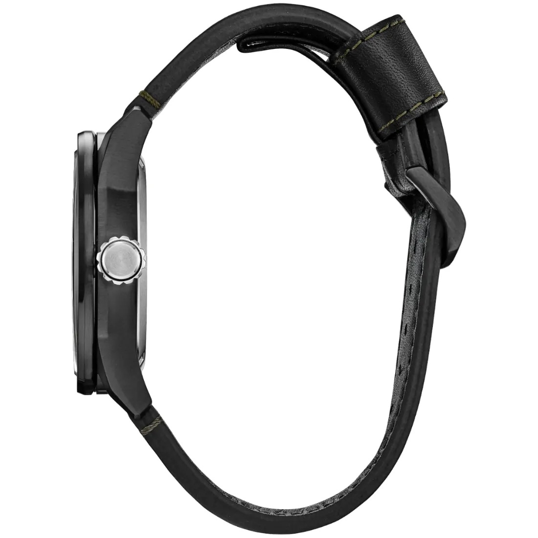 El Avion Weekender de inspiración vintage tiene un atractivo atemporal combinado con una función moderna, lo que lo hace el reloj CITIZEN® para usar ahora. Este reloj de estilo tradicional presenta una caja de acero inoxidable negra con una carátula verde de tres manecillas luminosas y fechador. La correa de piel negra con cierre de hebilla de tres piezas completan un estilo nostálgico. El Avion Weekender también cuenta con nuestra tecnología sostenible Eco-Drive, alimentando el reloj con cualquier fuente de luz.