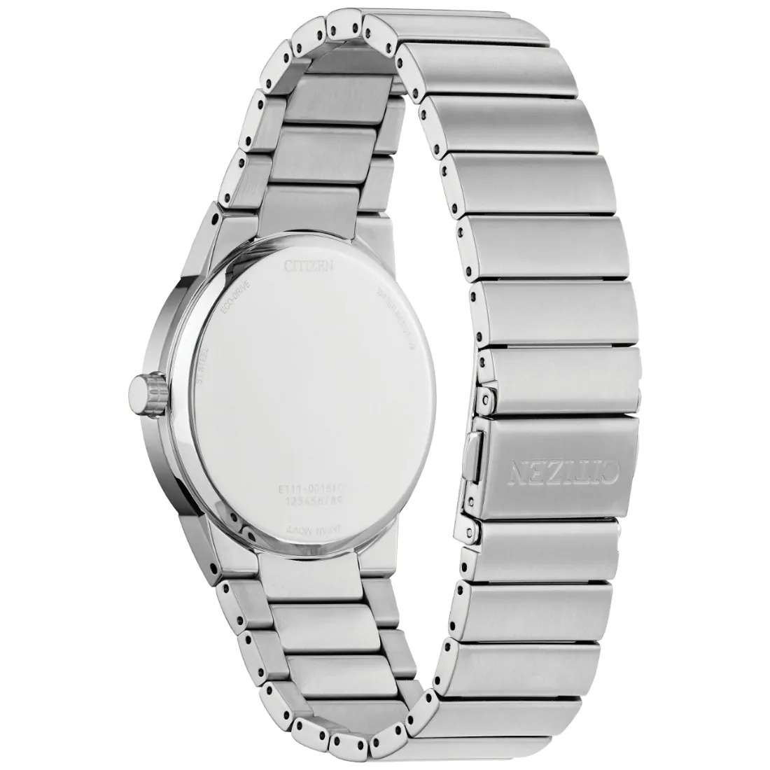 El diseño minimalista e impecable del Axiom ofrece una opción para moda de día y noche pensada para pioneros de tendencias. Un reloj con brazalete y caja de acero inoxidable con espesor de 8.5mm, cristal esférico doble, carátula azul con acentos plateados, 3 manecillas luminosas y fechador. Gracias a la tecnología Eco-Drive CITIZEN®, se alimenta no sólo de energía solar sino de cualquier tipo de luz.