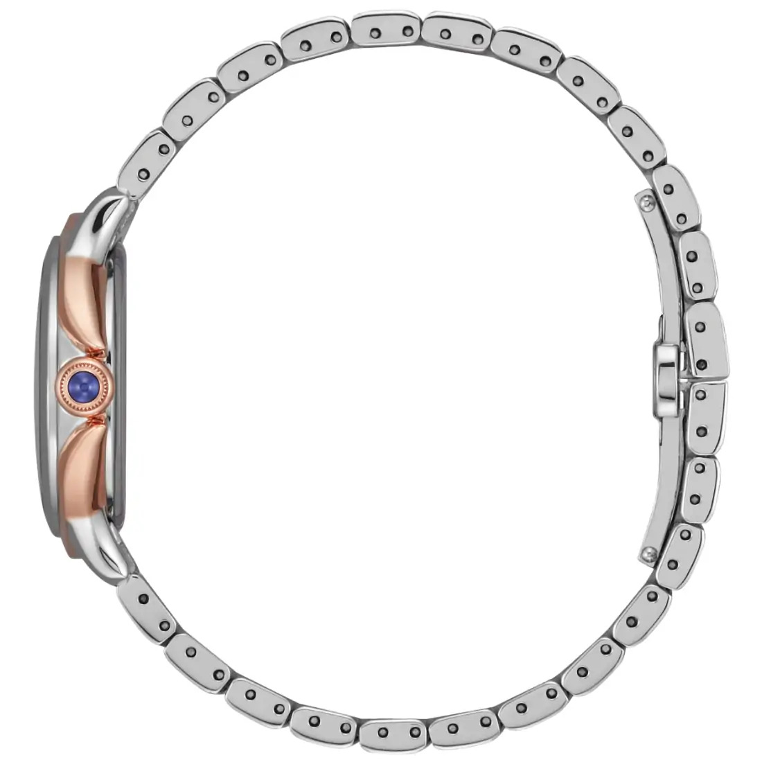 El reloj de diamantes para dama Ceci de CITIZEN está diseñado para brillar. Su elegante carátula negra cuenta con 12 diamantes que contrastan con la caja de acero inoxidable bitono y cabochón azul en la corona, logrando un estilo elegante y audaz que no pasa desapercibido. Ya sea que estés buscando un accesorio para una ocasión especial o una hermosa pieza de relojería para elevar tu atuendo, este reloj es una perfecta incorporación para cualquier guardarropa.