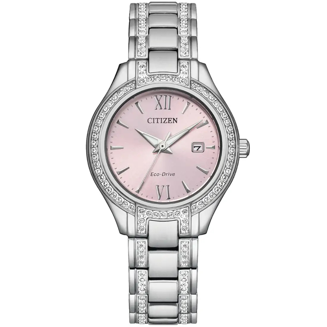 Cuando se trata de lo último en relojes para mujer, la colección Silhouette Crystal de CITIZEN® se lleva el primer premio. La caja y el brazalete de acero inoxidable se combinan con un carátula de color rosa claro con fechador. Cuenta con un total de 114 cristales genuinos incrustados en la caja y el brazalete que lo convierten en un reloj femenino y actual que se verá genial con cualquier estilo y en cualquier ocasión.