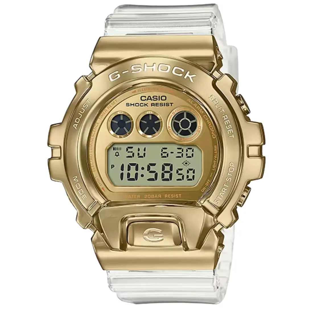 Tamaño de la caja (L× W× H): 53.9 × 49.7 × 18.6 mm Material de la caja/bisel: Resina/acero inoxidable Peso: 96 g Correa de resina Resistente a impactos Resistencia al agua de 200 m Fuente de alimentación: pila