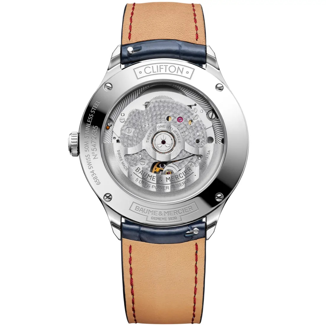 La sobria estética de una esfera blanca y limpia combina armoniosamente con el intenso atractivo de una correa de piel de aligátor azul en este reloj con fecha de 40 mm para hombres de voluntad inquebrantable. Por su parte, el elegante bisel circunda una esfera bien equilibrada en la que encontramos índices pulidos, agujas rodiadas y una función de fecha situada a las 3 horas. En este reloj de pulsera automático, la maestría del movimiento mecánico automático se puede admirar a través del fondo transparente de cristal de zafiro.