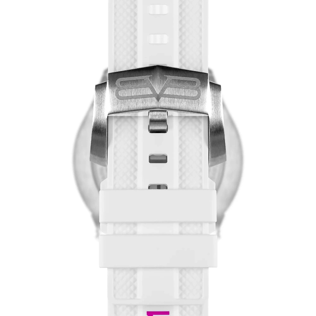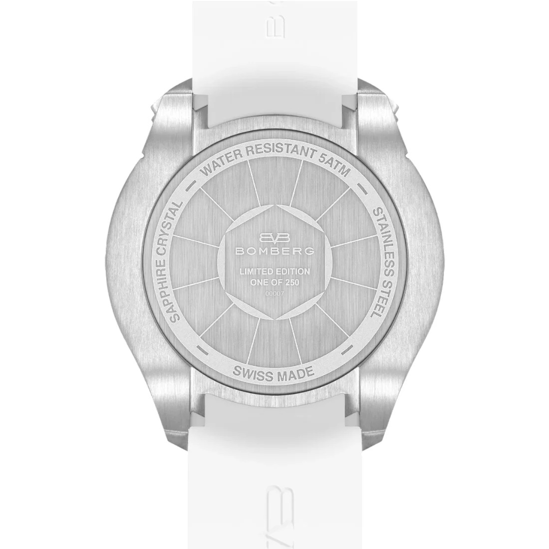 Correa: Correa de silicona blanca con letras multicolores BOMBERG. Hebilla : Acero inoxidable.