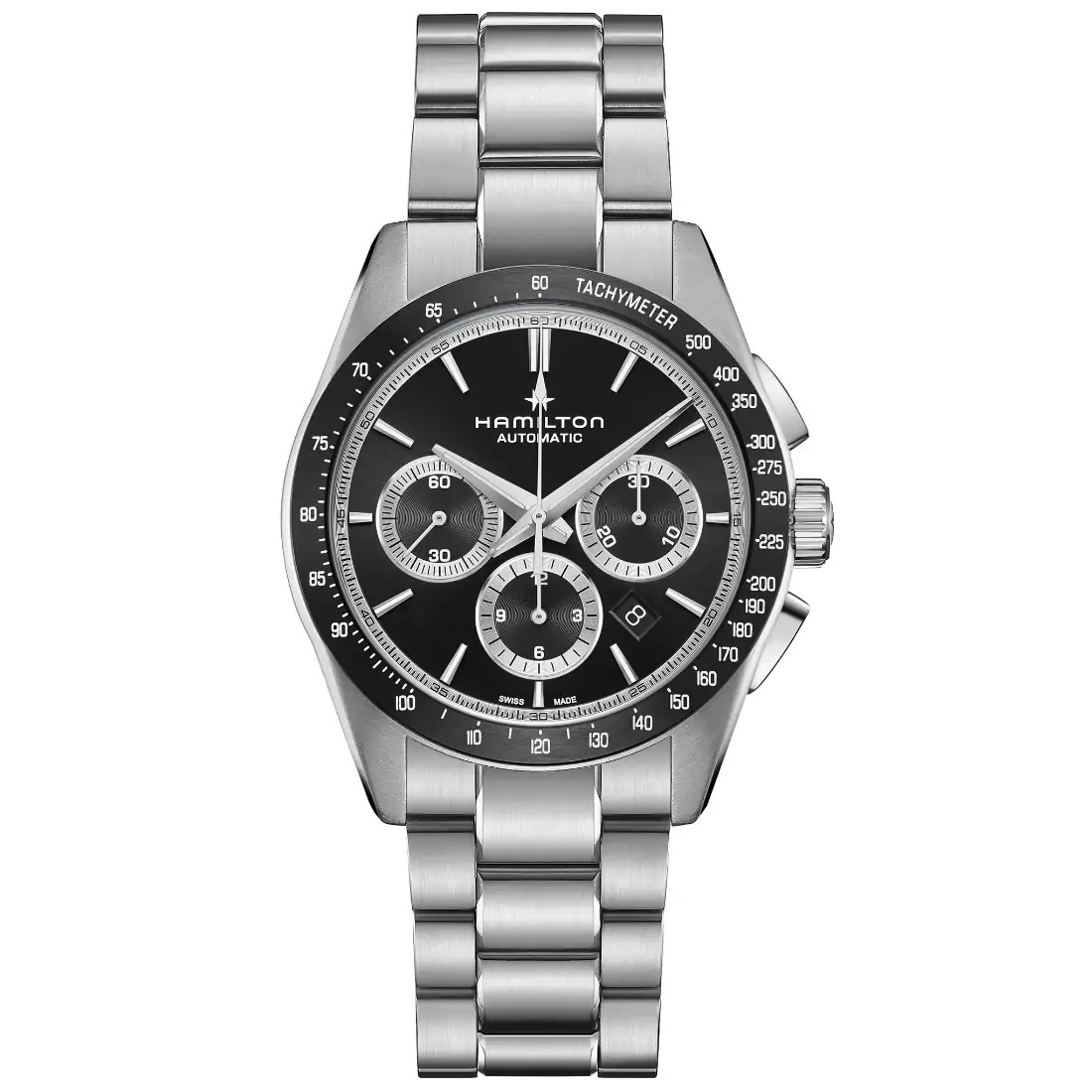 La línea Jazzmaster Performer, concebida para quienes buscan combinar la funcionalidad y el estilo, un reloj que ofrece un aspecto imponente, con un diseño deportivo y refinado. Este Jazzmaster Performer Automatic Chronograph H36606130, equipado con el movimiento automático de cronógrafo H-31 con reserva de marcha de 60 horas, cuenta con una caja de acero inoxidable de 42 mm realzada por una elegante esfera negra y una correa de piel negra perforada de estilo deportivo a juego.