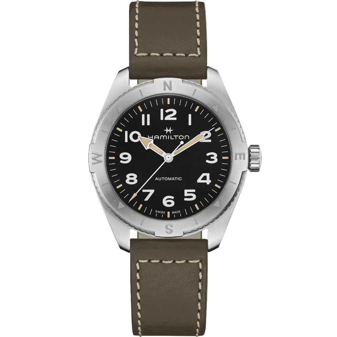 Prepárate para tus actividades al aire libre con el Khaki Field Expedition, un reloj de aventura todoterreno con un diseño de brújula que te permite proseguir la aventura con la ayuda del sol. Se alberga en una caja de acero inoxidable de 41 mm junto con una correa de piel verde, y está equipado con una corona atornillada para proteger el movimiento contra las inclemencias del tiempo. El Khaki Field Expedition, dotado de una esfera negra texturizada con revestimiento de Super-Luminova® para conseguir la máxima legibilidad, te ofrece la resistencia que necesitas.
