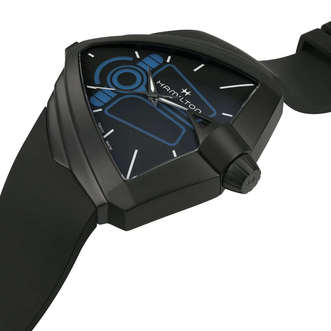 La edición limitada Ventura XXL Bright Dune se inspira en el dispositivo de muñeca creado por Hamilton pra la película "Dune: Parte Dos". La esfera azul, luminosa y seductora, hace referencia a los inconfundibles ojos azules del pueblo de los Fremen. Un botón en el lado izquierdo de la caja del Ventura XXL Bright activa las líneas azules luminosas, replicando el diseño de la esfera del "Desert Watch". Esta pieza de edición limitada incluye un embalaje conmemorativo inspirado en la película, convirtiéndose en un imprescindible para los fanáticos de las películas y libros, así como para los coleccionistas.