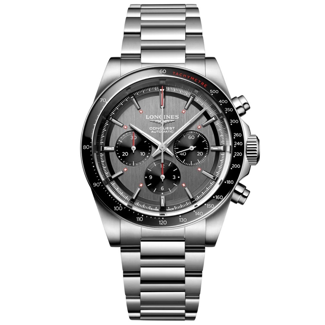 Conquest, el nombre del reloj definitivo para el día a día, también fue la primera colección de LONGINES cuyo nombre fue protegido por la Oficina Federal de la Propiedad Intelectual de Suiza en 1954. Desde entonces, la colección ha evolucionado a través del diseño y la tecnología, pero se ha mantenido fiel a su identidad original, creando una armoniosa fusión de audacia, diseño contemporáneo y elegancia deportiva. Cada reloj Conquest Chronograph es una muestra del firme compromiso de LONGINES con el rendimiento y la excelencia relojera. Estos cronógrafos están impulsados por un exclusivo calibre LONGINES equipado con espiral de silicio.