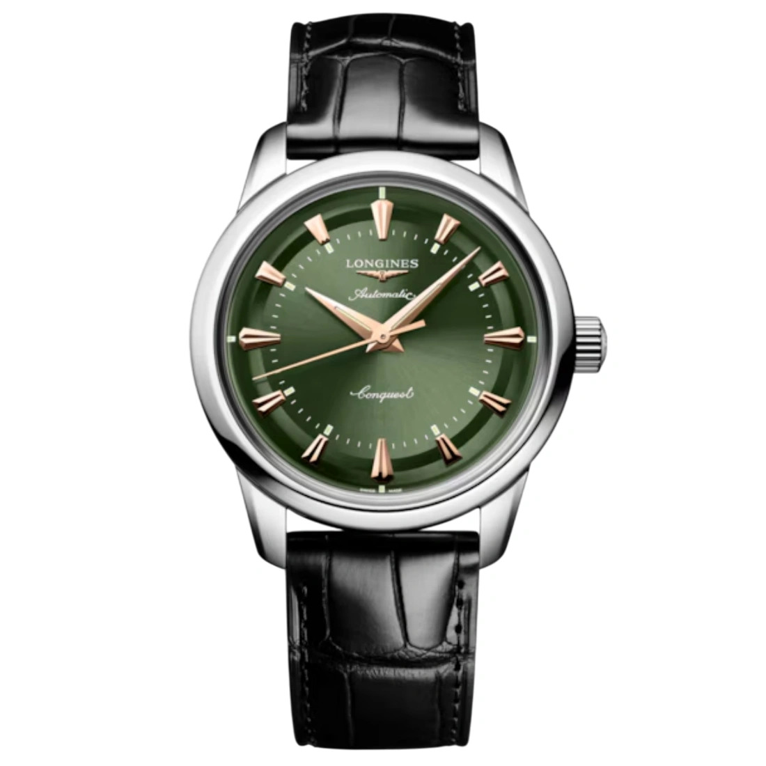 Color esfera: Verde pulida negra Círculo horario: Índices aplicados Agujas: Agujas rosa Características: Swiss Super-LumiNova