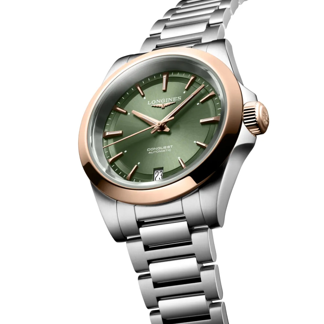Color esfera: Sunray green Círculo horario: Índices aplicados Agujas: Agujas rosa Características: Swiss Super-LumiNova