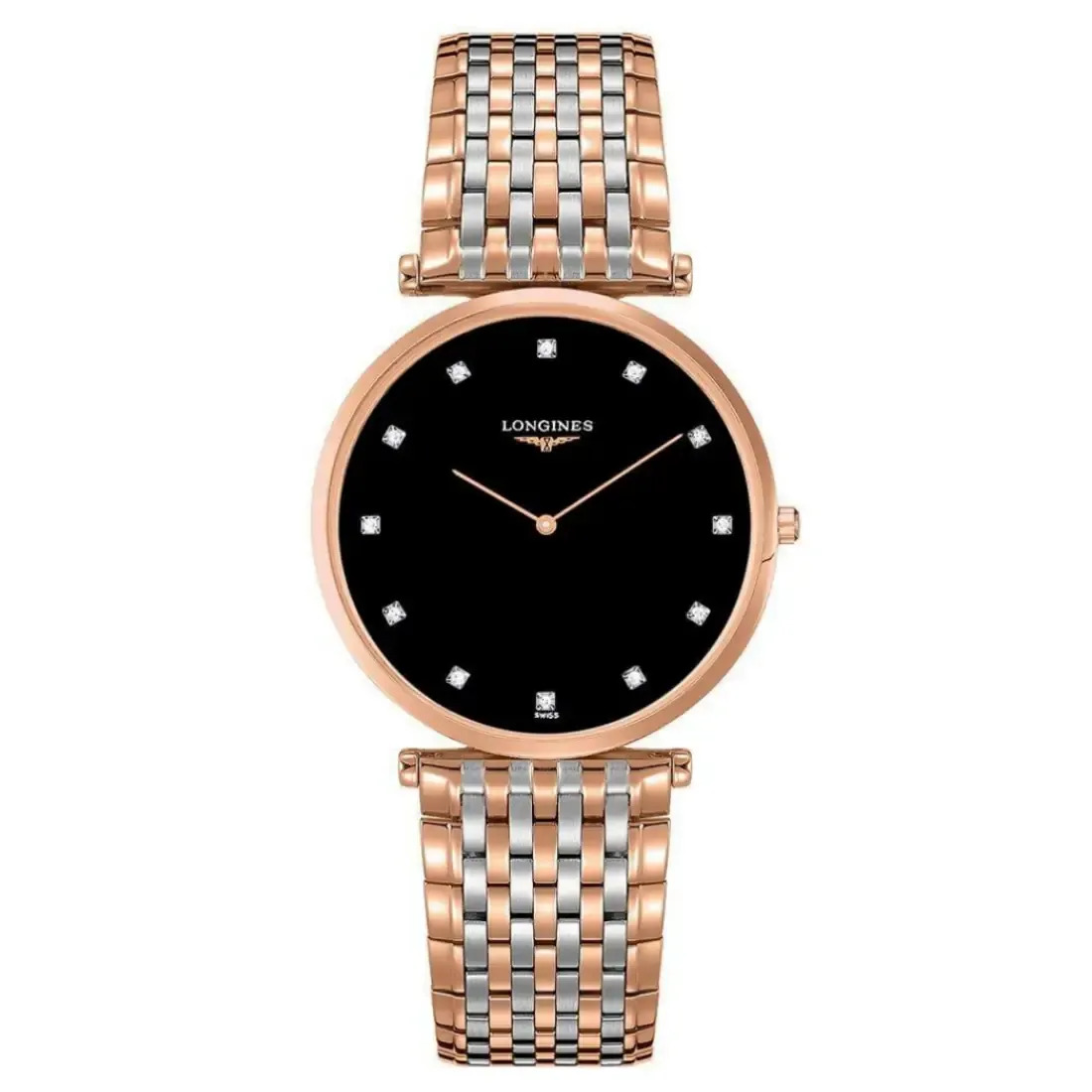 Color esfera: Negro Círculo horario: Índices de diamante Agujas: Agujas rosa Diamantes: Esfera engastada con diamantes 12 Top Wesselton VS-SI, para un total de 0.081 quilates