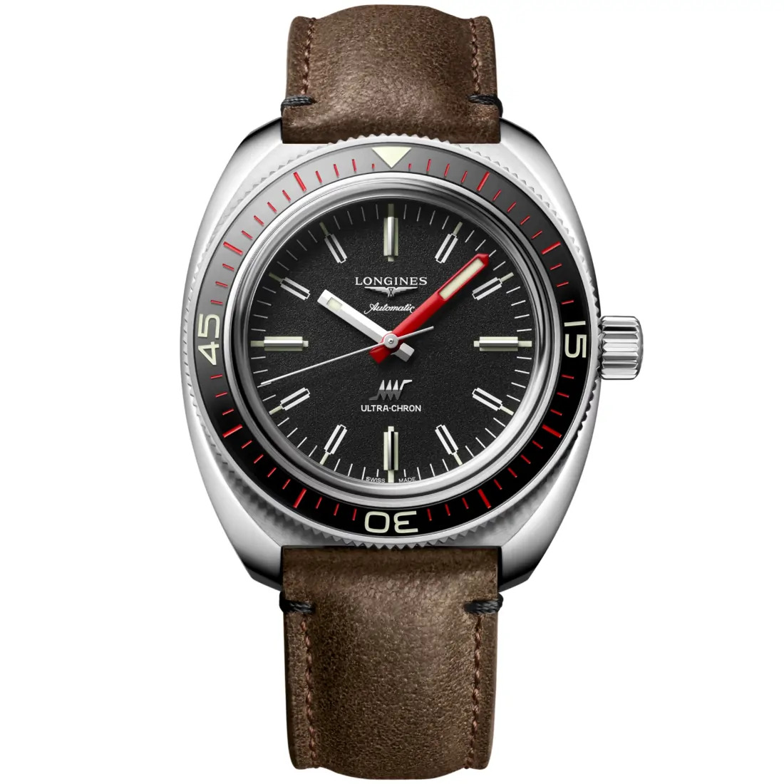 Color esfera: Negro Círculo horario: Índices aplicados Agujas: Agujas plateadas pulidas Características: Swiss Super-LumiNova®