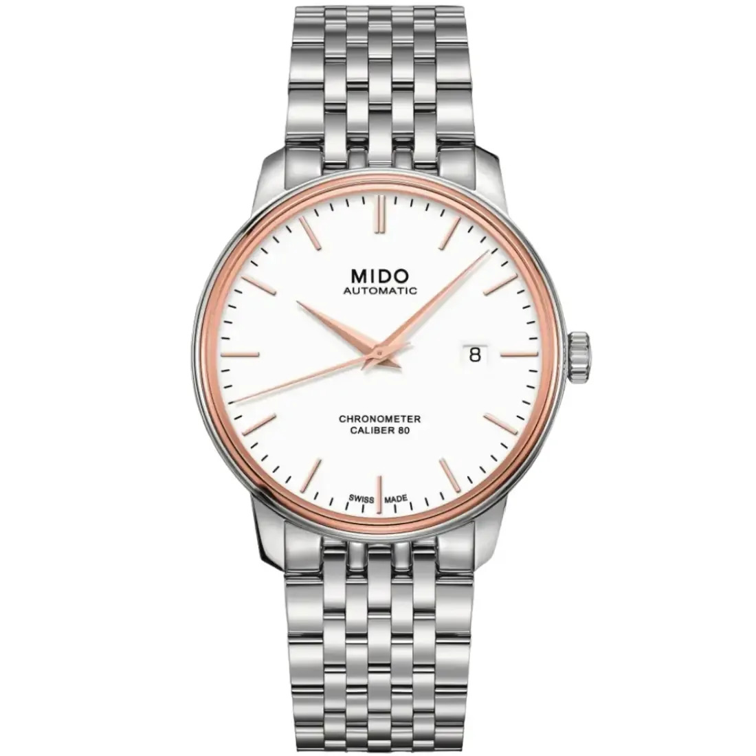 Movimiento COSC Funciones: Fecha, Silicio, Cronómetro COSC Movimiento: Cronómetro automático ETA Mido Reserva de marcha: Reserva de marcha de hasta 80 horas