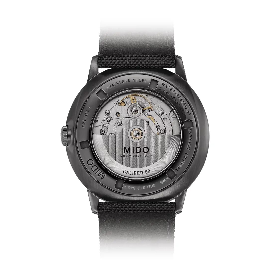 Con el reloj suizo MIDO Commander Gradient, la mecánica relojera se hace visible gracias a una carátula de acrílico transparente, una novedad en esta icónica colección. Los componentes del Calibre 80 se pueden admirar tanto en el lado de la carátula como en la parte trasera gracias a un fondo de caja transparente. Adornada con un original efecto ahumado degradado, la carátula se vuelve cada vez más opaca en los bordes, mientras que la fecha a las 3 en punto se destaca perfectamente.