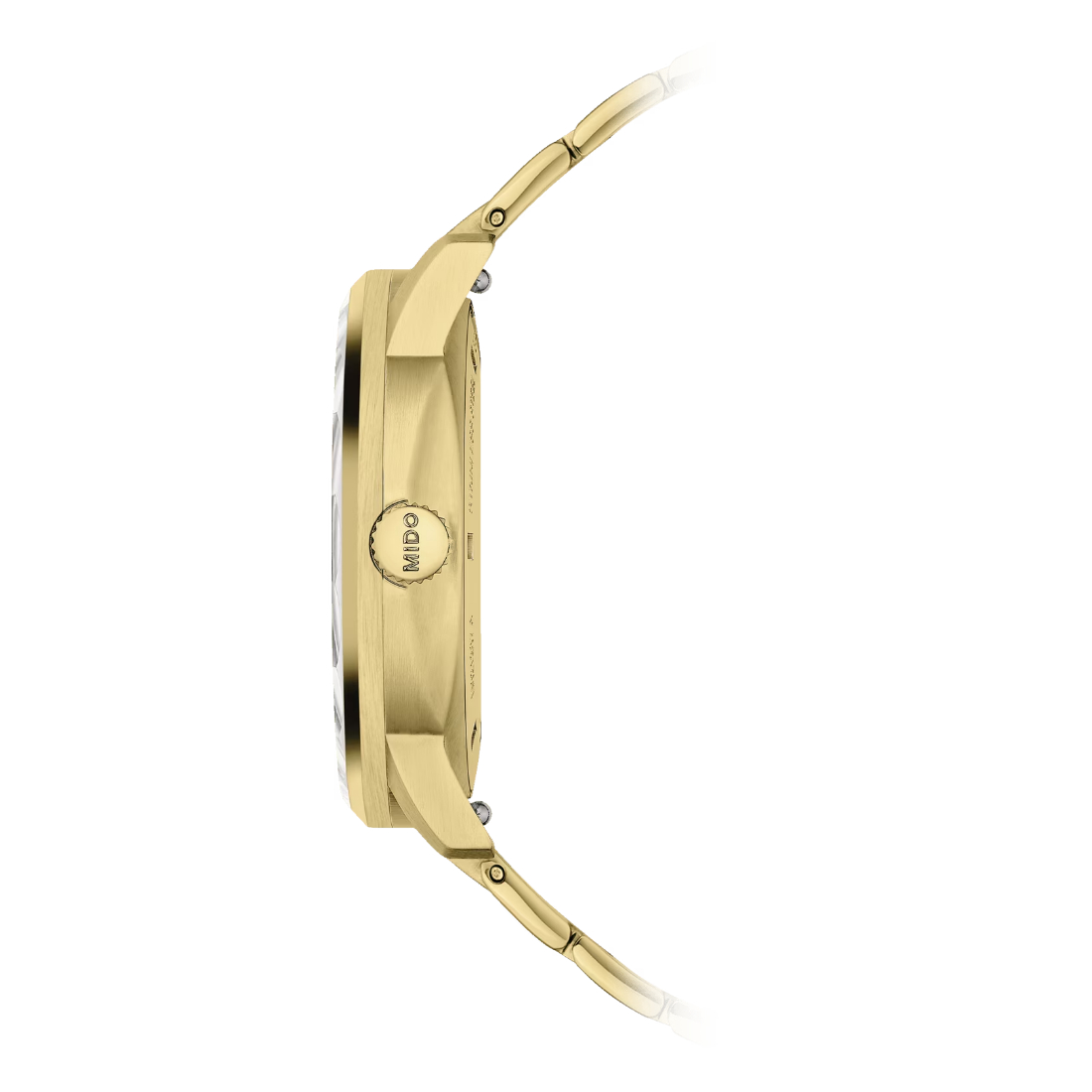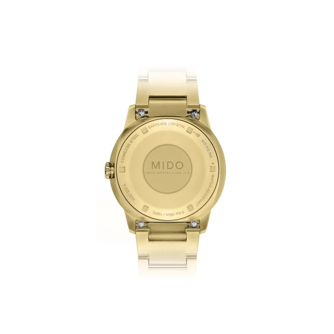 Movimiento Funciones: Fecha Reserva de marcha: Reserva de marcha de hasta 72 horas Movimiento: Automático ETA Mido