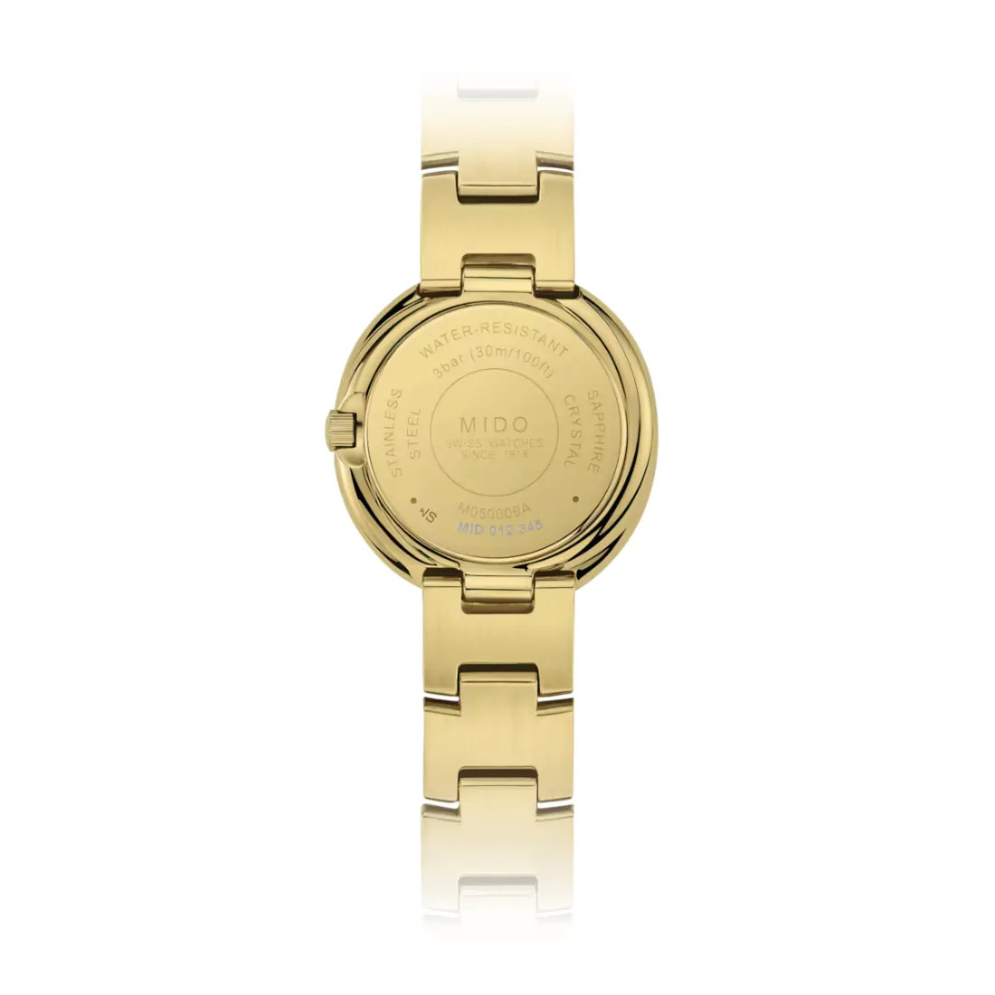 Caja y Cristal Forma de la caja: Redondo Longitud: 26.50 Anchura: 24.92 Espesor Medio (mm): 6.3 Material de la caja: Acero inoxidable con revestimiento de PVD color oro amarillo Cristal: Cristal zafiro
