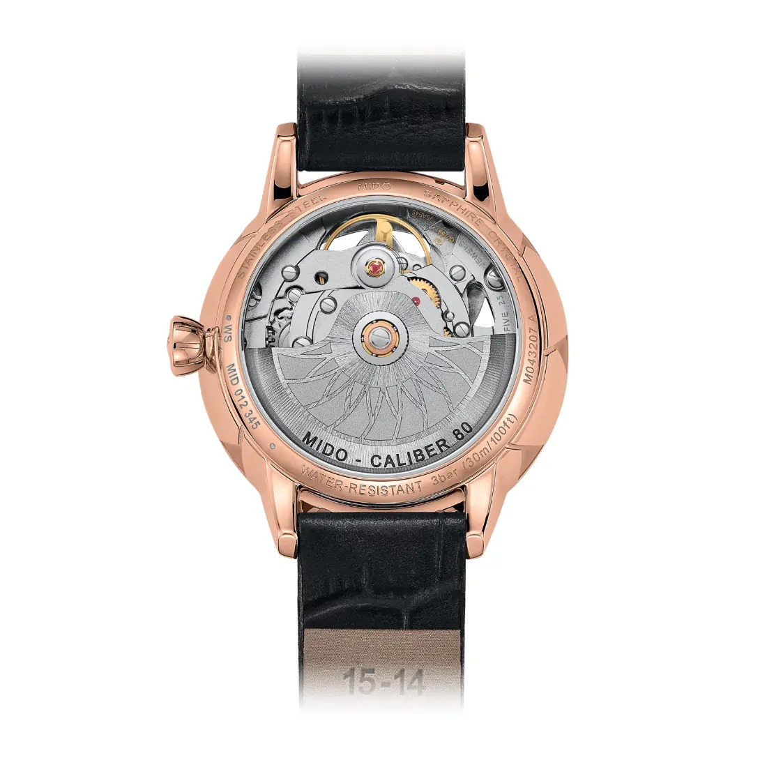 Movimiento Reserva de marcha: Reserva de marcha de hasta 80 horas Movimiento: Automático ETA Mido