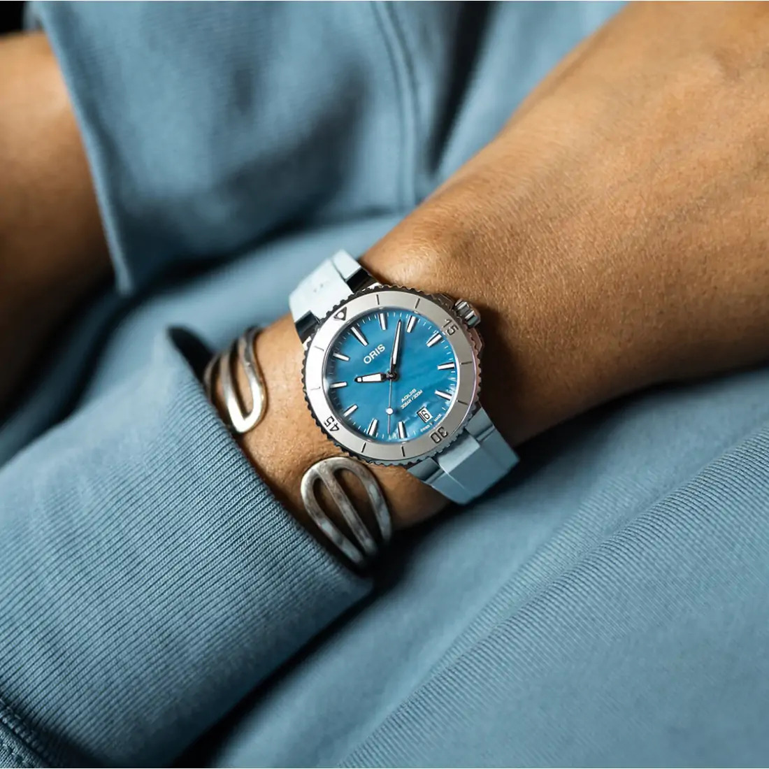 MATERIAL Correa de caucho azul, cierre desplegable de acero inoxidable