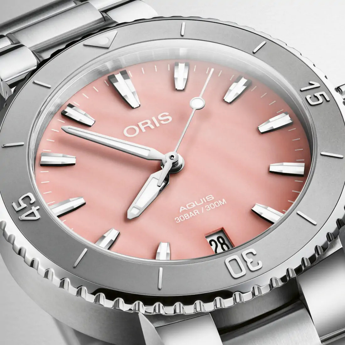 Esfera de nácar rosa Índices y agujas Superluminova BG W9