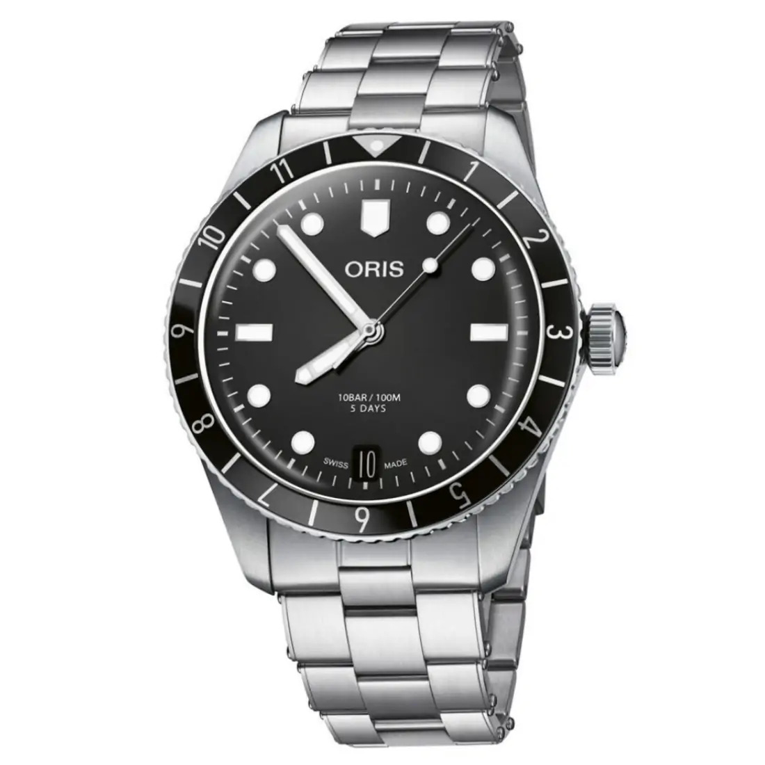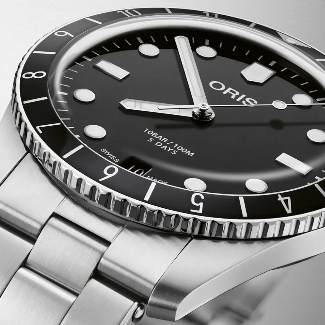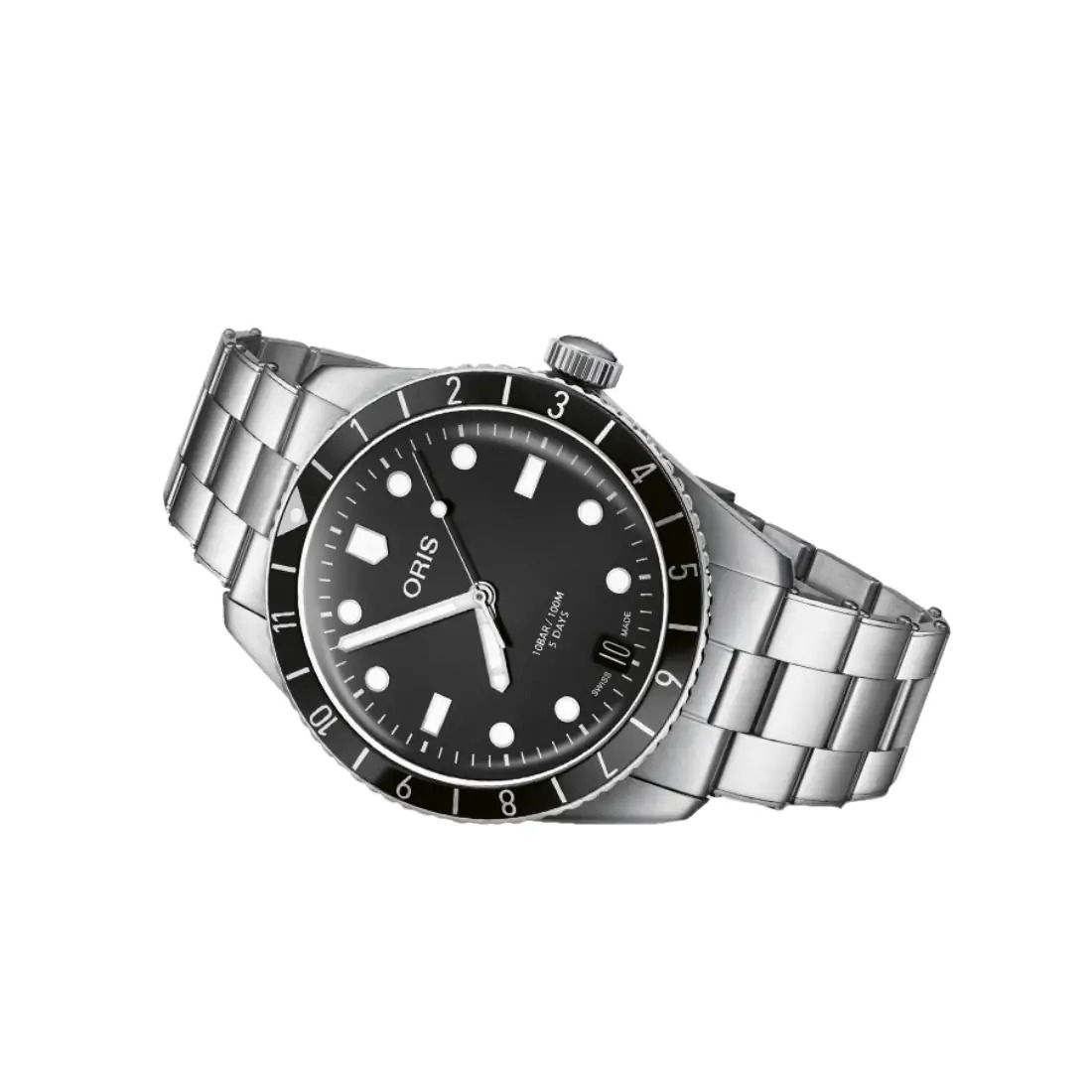 NÚMERO Oris 400 DIMENSIONES Ø 30.00 mm, 13 1/4’’’ FUNCIONES Agujas horas, minutos y segundos centrales, ventana fecha, fecha instantánea, corrector fecha, excelente cronometrador y paro segundo REMONTE Remonte automático RESERVA DE MARCHA 120 h VIBRACIONES 28’800 A/h, 4 Hz RUBÍES 21