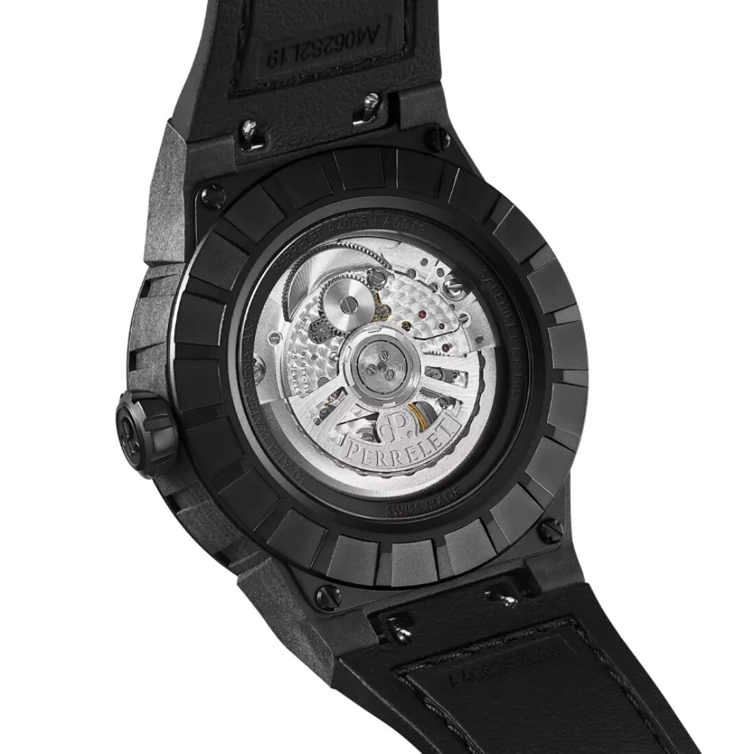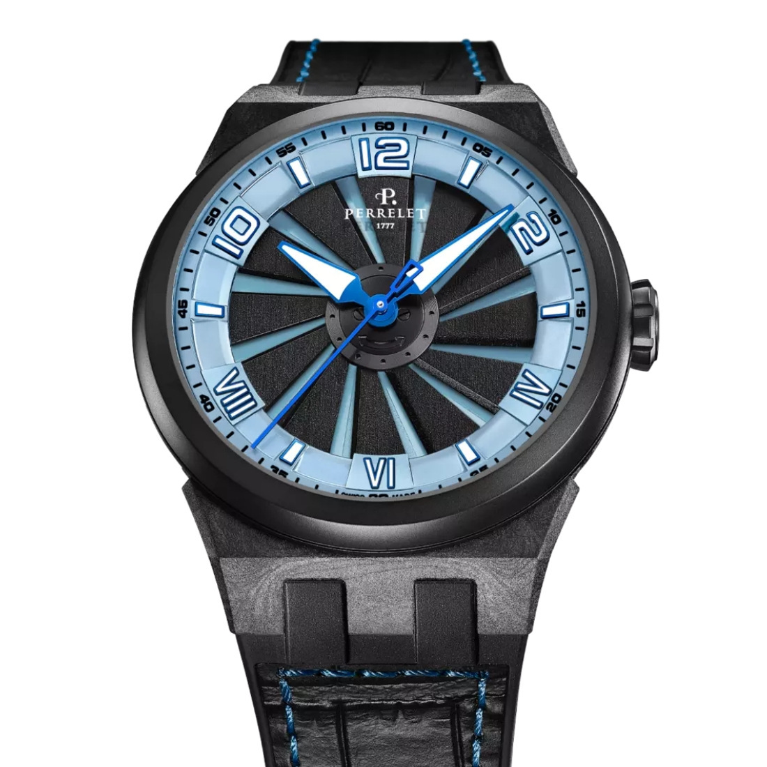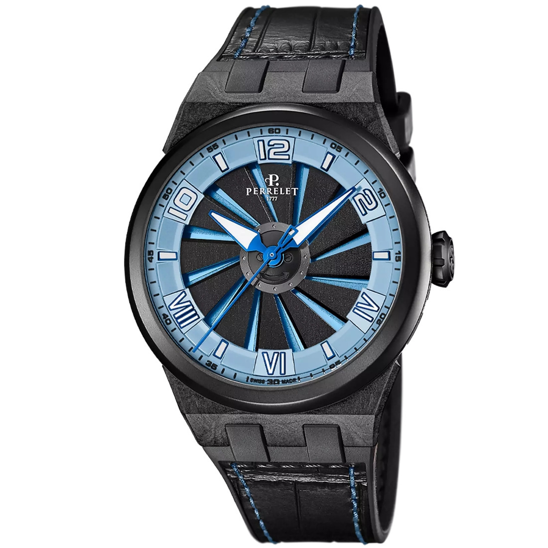 Calibre Perrelet P-331-MH Turbine con CERTICICACION COSC Alternancias/hora: 28 800 (4 Hz) Número de rubíes: 25 Número de componentes: 92 Autonomía de funcionamiento del movimiento (con carga máxima): 42 horas