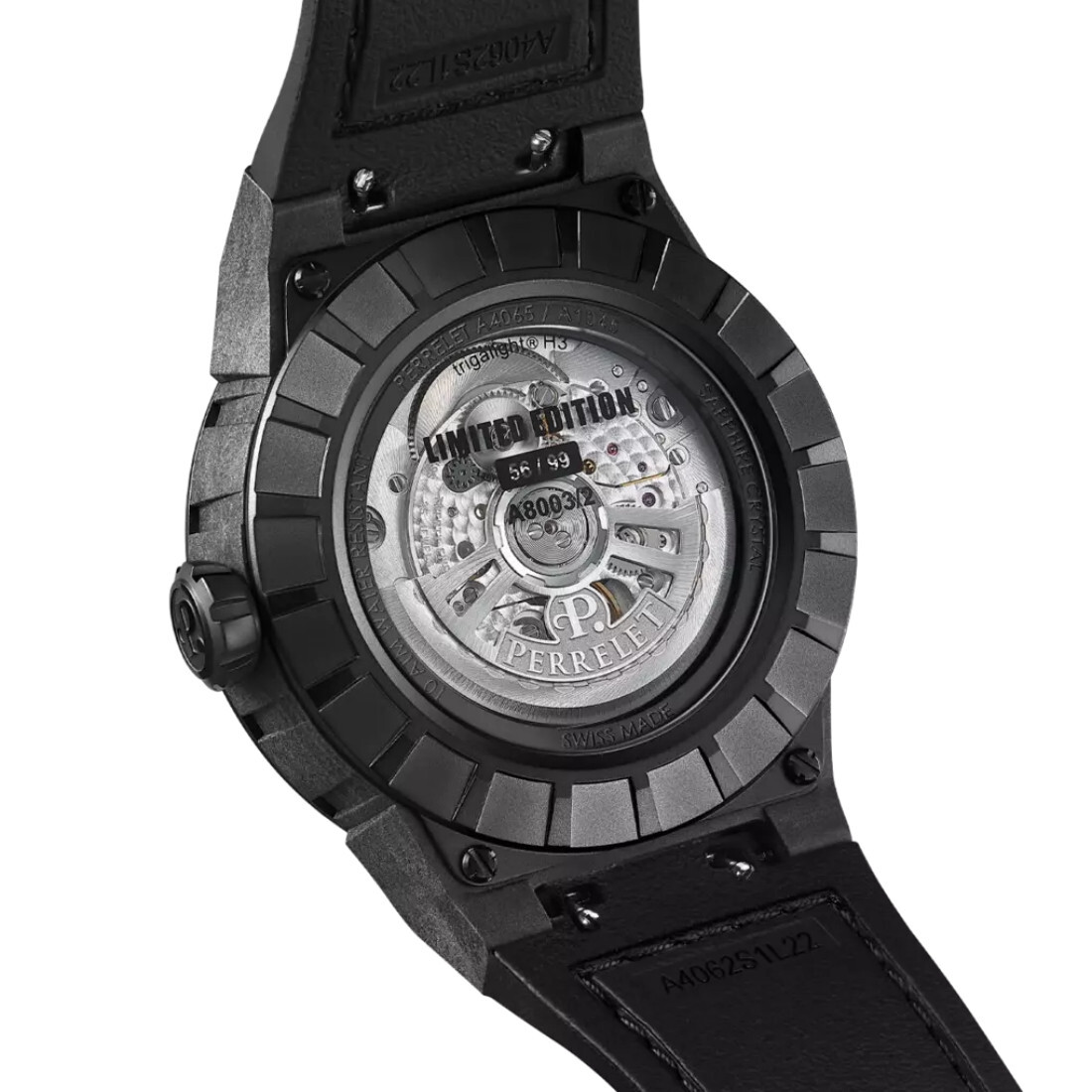 Calibre Perrelet P-331-MH Turbine con CERTICICACION COSC Alternancias/hora: 28 800 (4 Hz) Número de rubíes: 25 Número de componentes: 92 Autonomía de funcionamiento del movimiento (con carga máxima): 42 horas