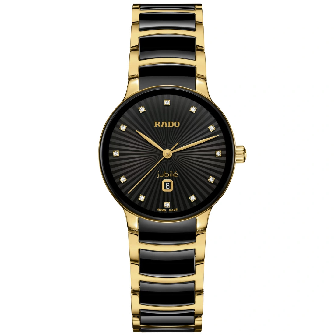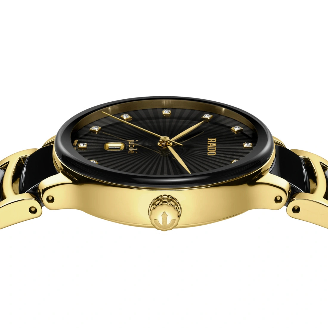 Color de la esfera: Negro Indicador de fecha en la esfera Joyas en la esfera: con 12 diamantes