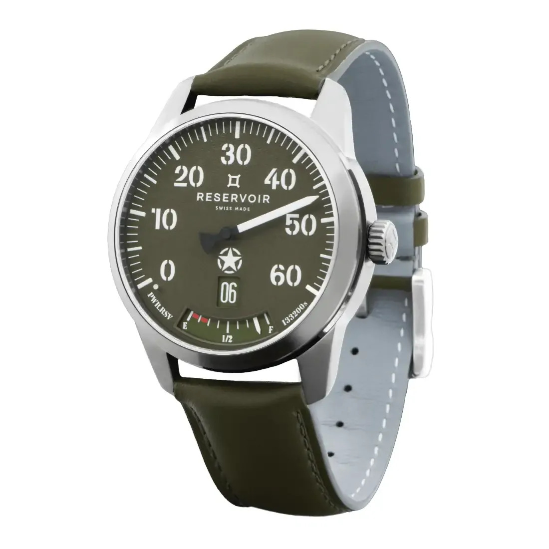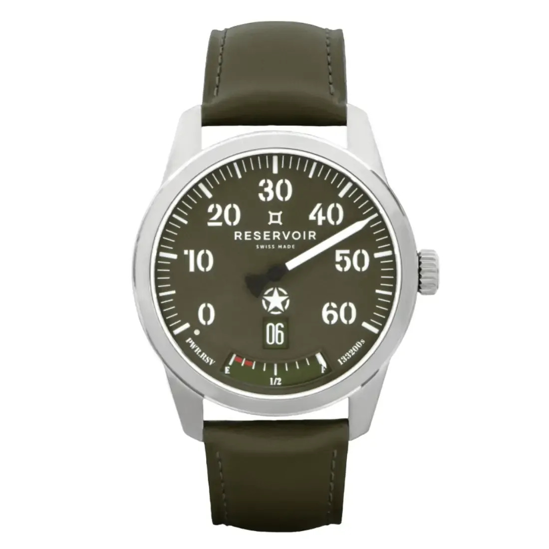 - Correa de piel caqui, 22 mm de ancho - Cierre desplegable de mariposa de acero inoxidable - Correa NATO adicional provista de pasadores de liberación rápida para facilitar el cambio de correa