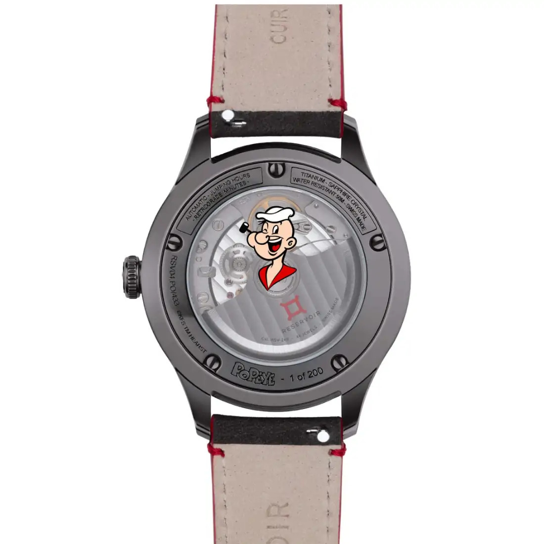 – Caja de titanio DLC gris de 41,5 mm con acabado satinado – Esfera gris con patrón “Popeye” – Índice blanco< a i=3>– Corona atornillada, resistente al agua hasta 5 ATM– Fondo de caja abierto, con carácter exclusivo “Popeye” en el cristal – Antirreflectante Cristal de Zafiro
