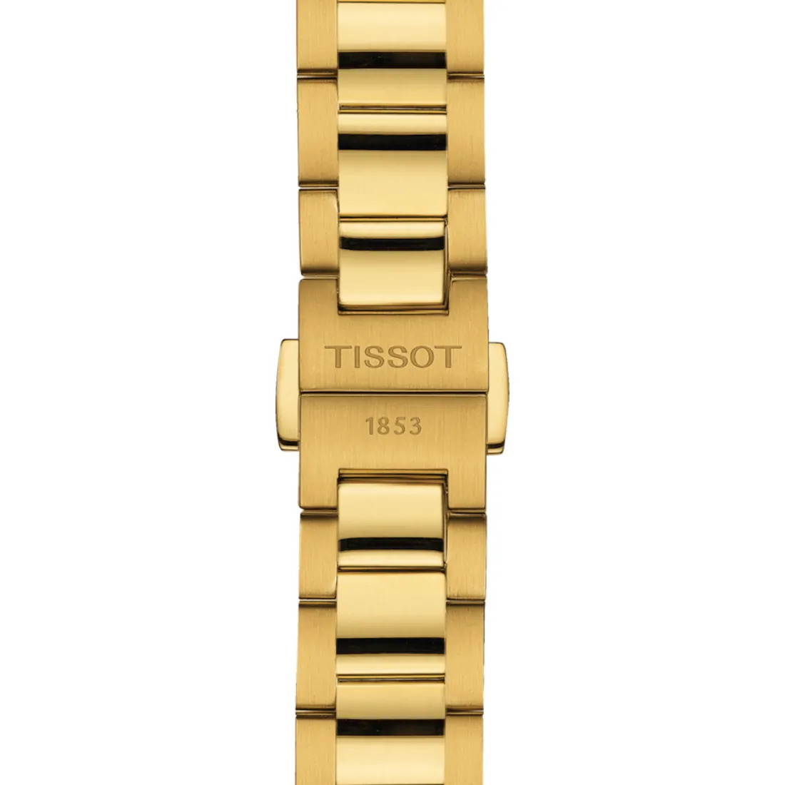 Correa/Brazalete Referencia de la correa/cadena: T605049324 Detalles de la correa: Acero Inoxidable Color de la correa: Oro amarillo 1n14 Cierre: Pulsera intercambiable de fácil apertura, Cierre de mariposa con pulsadores Referencia de la correa: T613049343|T613049344