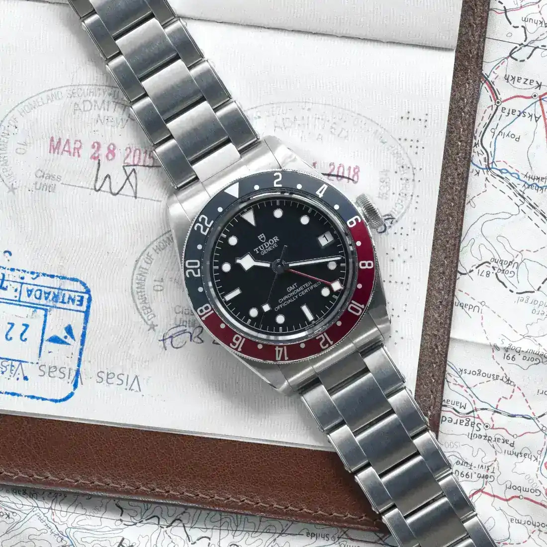 Bisel giratorio bidireccional de acero con 48 muescas, disco de aluminio anodizado azul mate y burdeos mate, con graduación de 24 horas