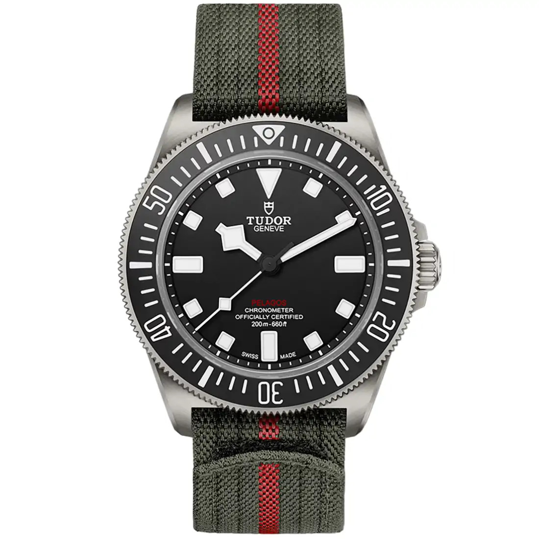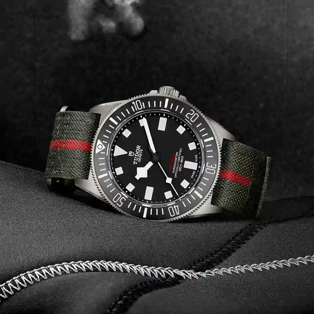 Correa de tejido de 22 mm con sistema de autoagarre, verde bosque con hilo central rojo Correa adicional de caucho negro con motivo tejido y cierre de hebilla de titanio, incluida en el estuche